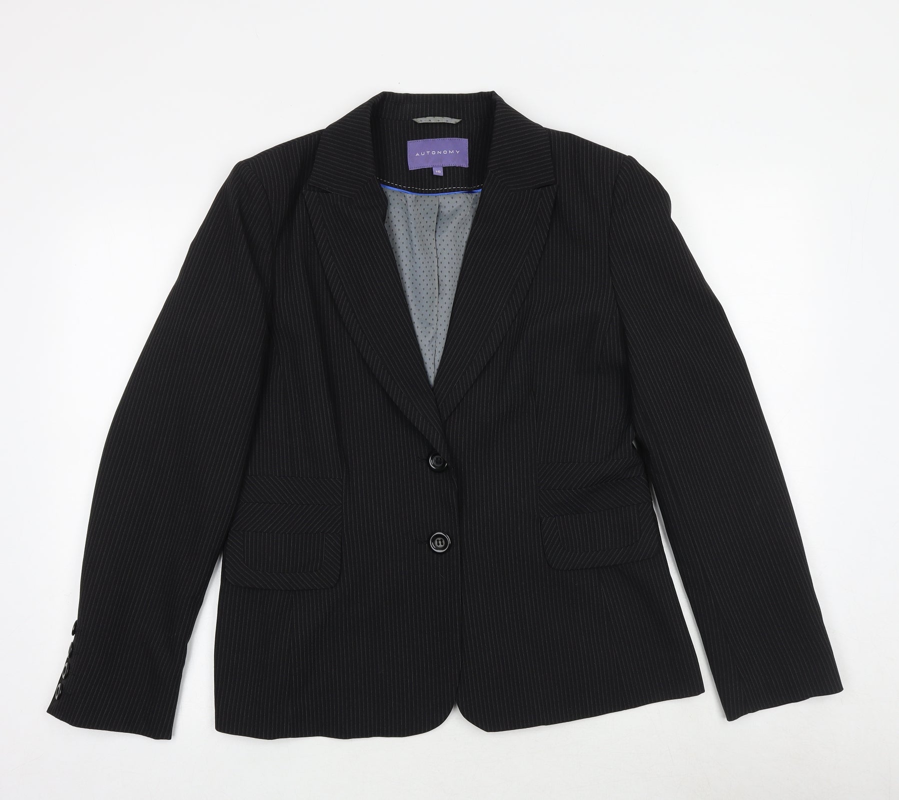 Autonomy Womens Black Striped Polyacrylate Fibre Jacket Suit Jacket Size 14