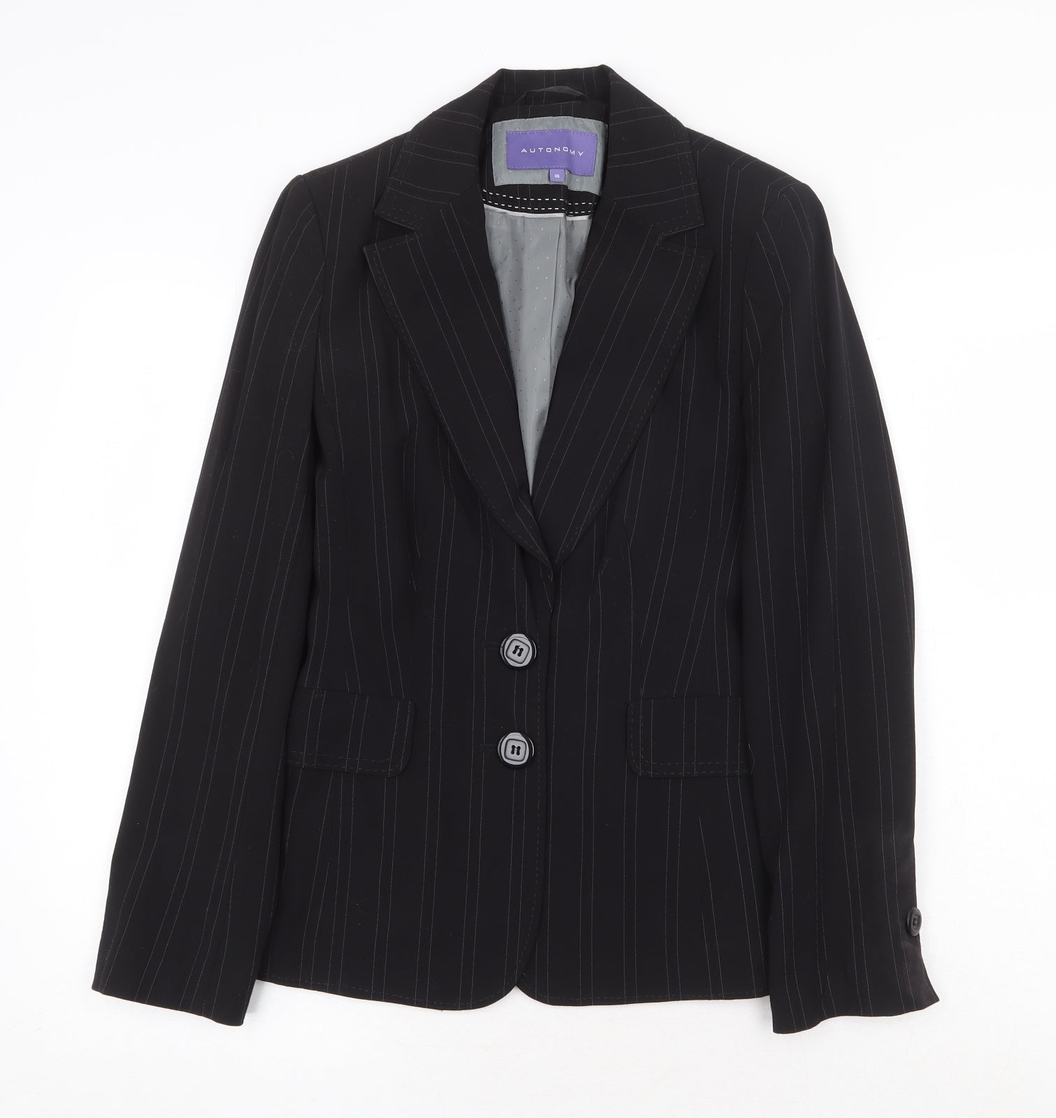 Autonomy Womens Black Striped Polyester Jacket Suit Jacket Size 8