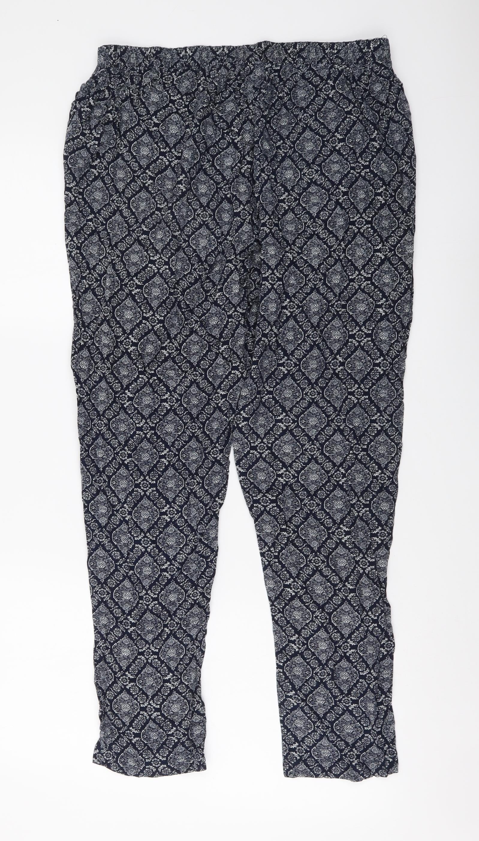 Autonomy Womens Blue Geometric Viscose Trousers Size 12 L27 in Regular