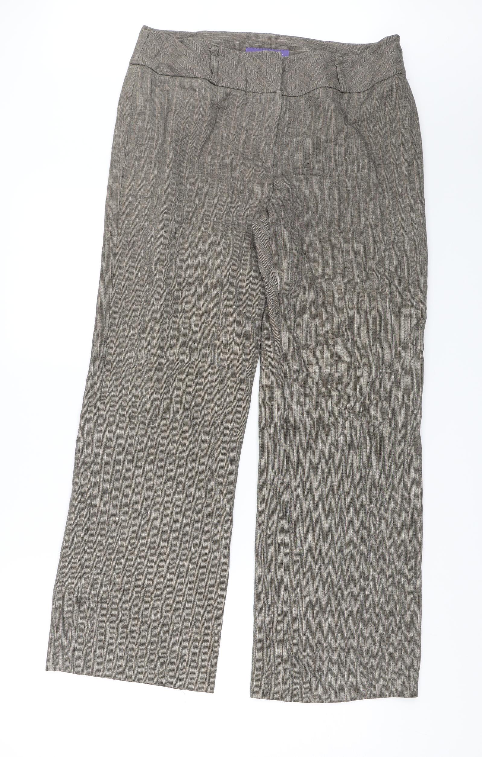 Autonomy Womens Brown Striped Dress Pants Trousers Size 14 L28 in