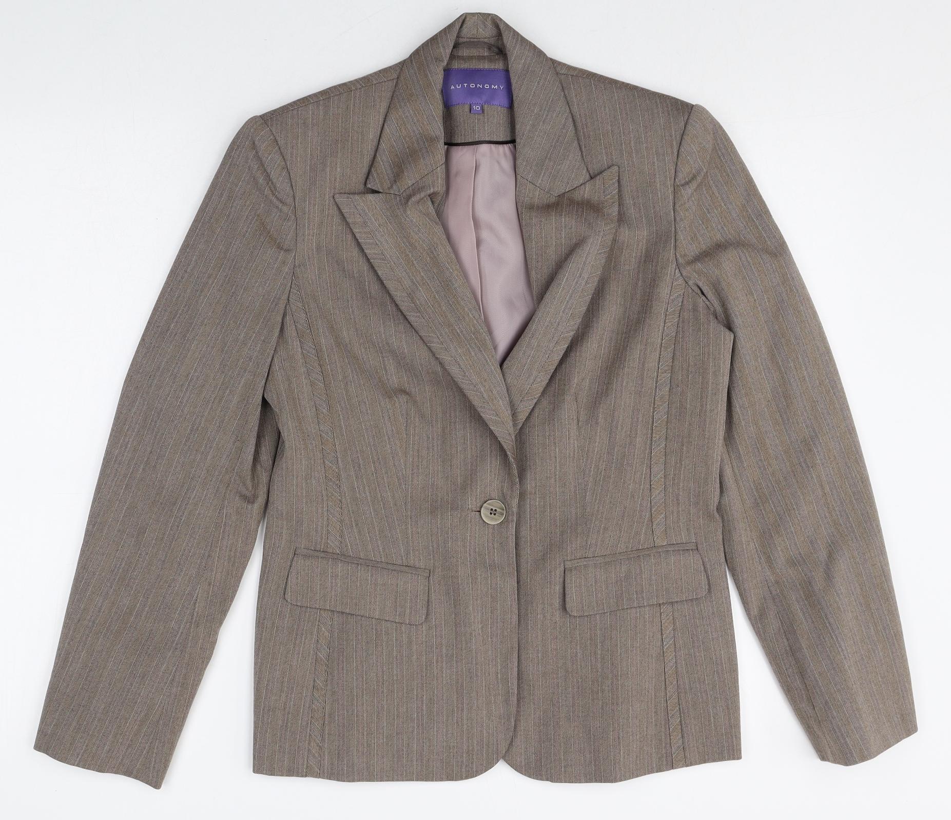 Autonomy Womens Brown Striped Polyester Jacket Blazer Size 10