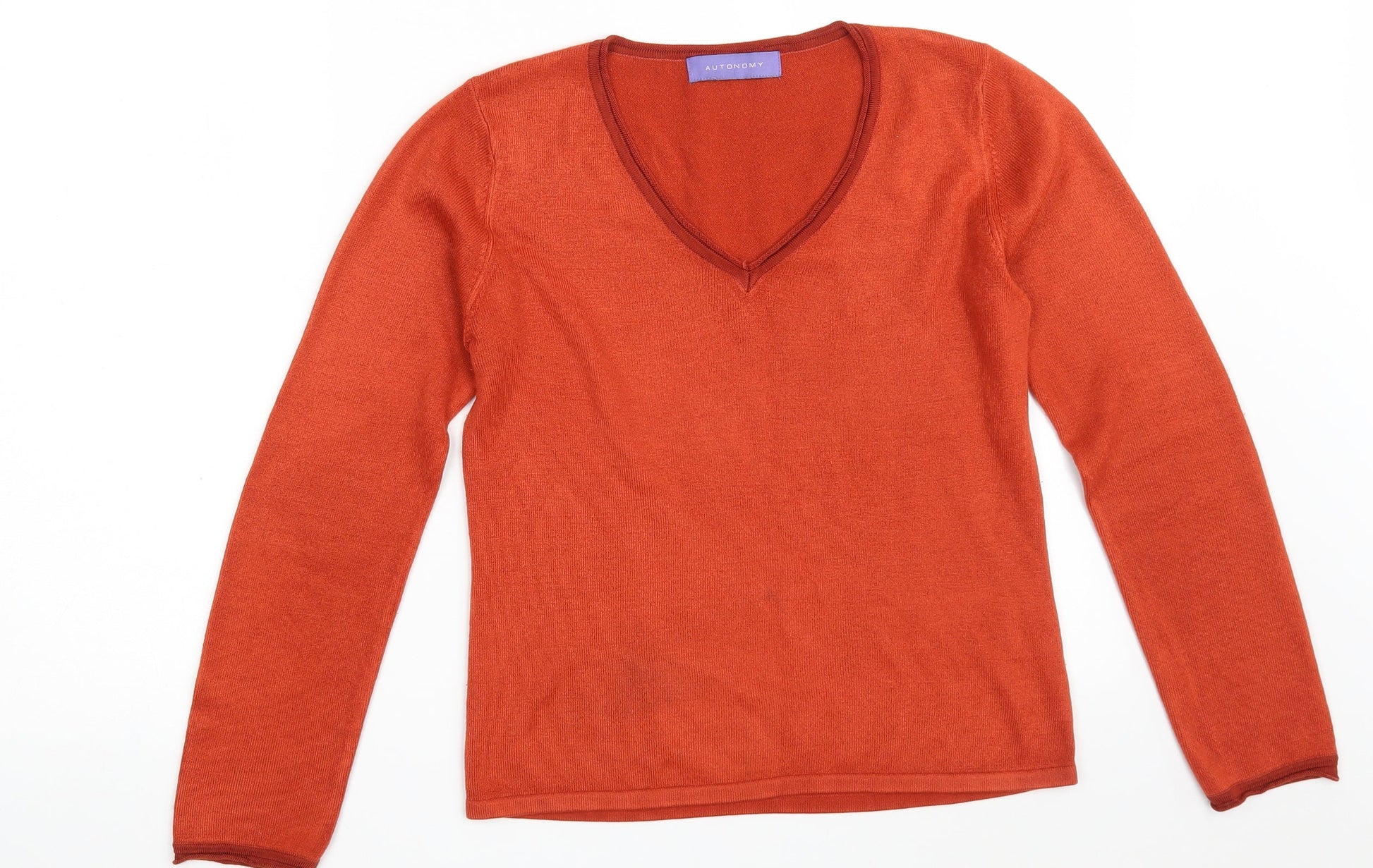 Autonomy Womens Brown V-Neck Acrylic Pullover Jumper Size M
