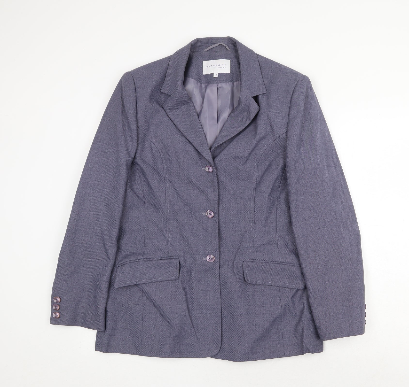 Autonomy Womens Grey Polyester Jacket Suit Jacket Size 14