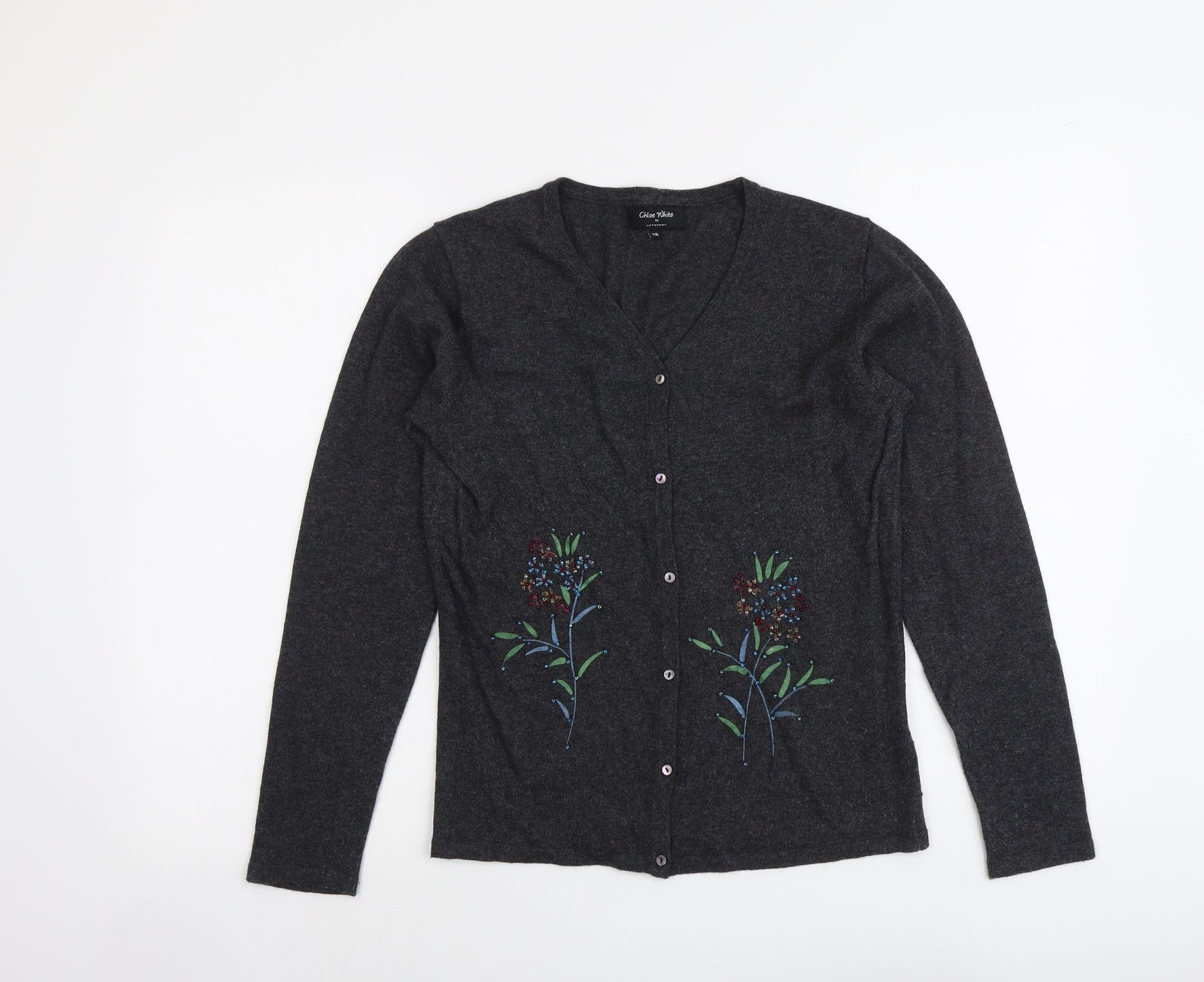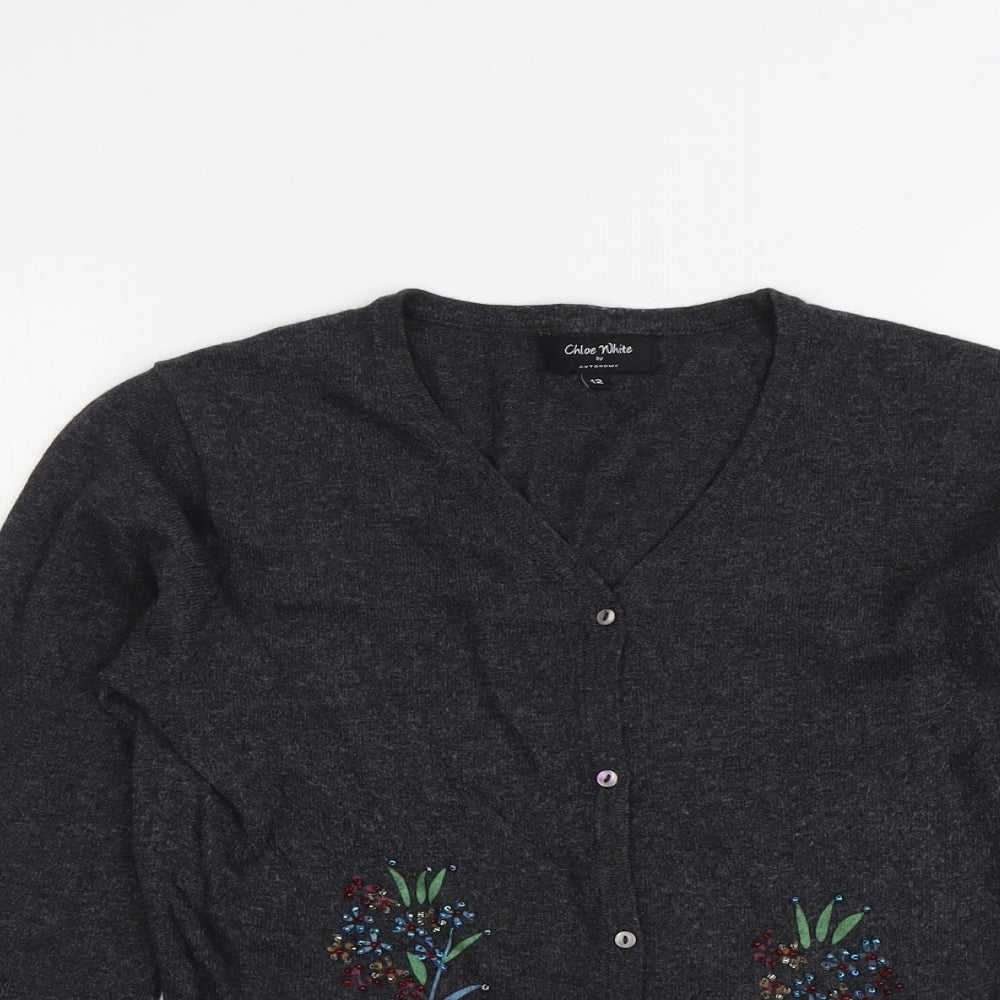 Autonomy Womens Grey V-Neck Acrylic Cardigan Jumper Size 12