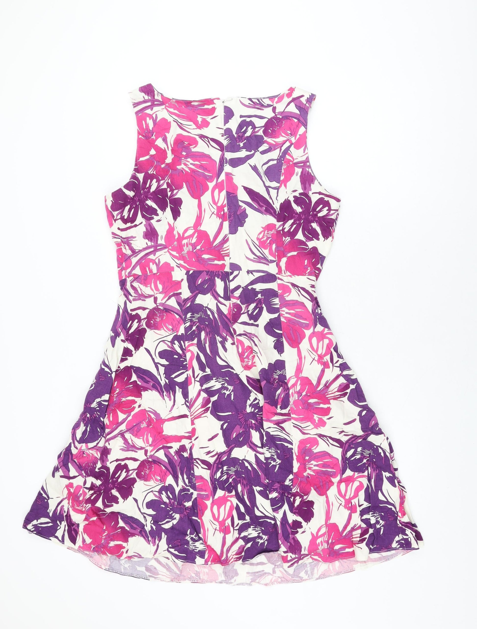 Autonomy Womens White Floral Cotton A-Line Size 14 Round Neck Zip