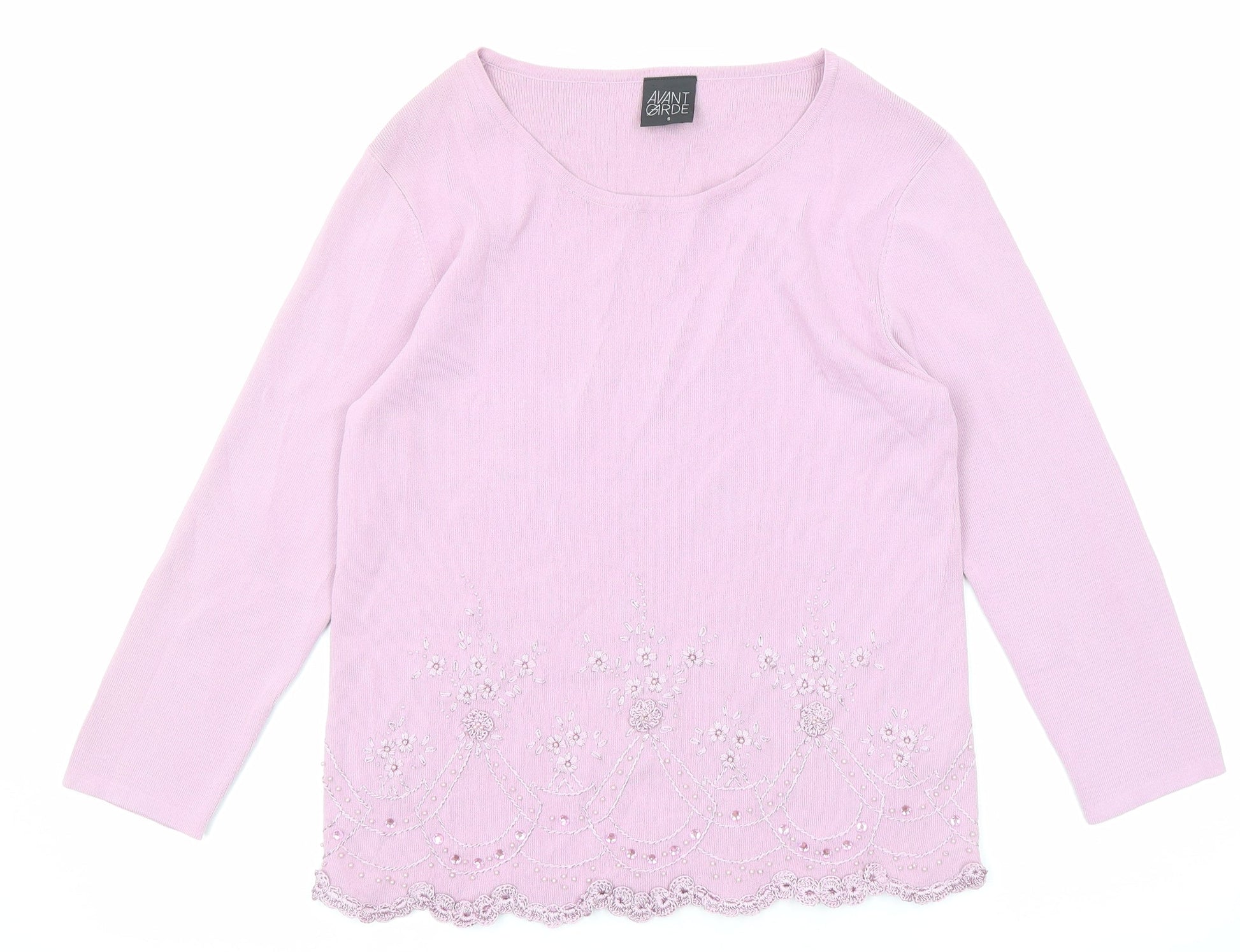 Avant Garde Womens Purple Round Neck Viscose Pullover Jumper Size S