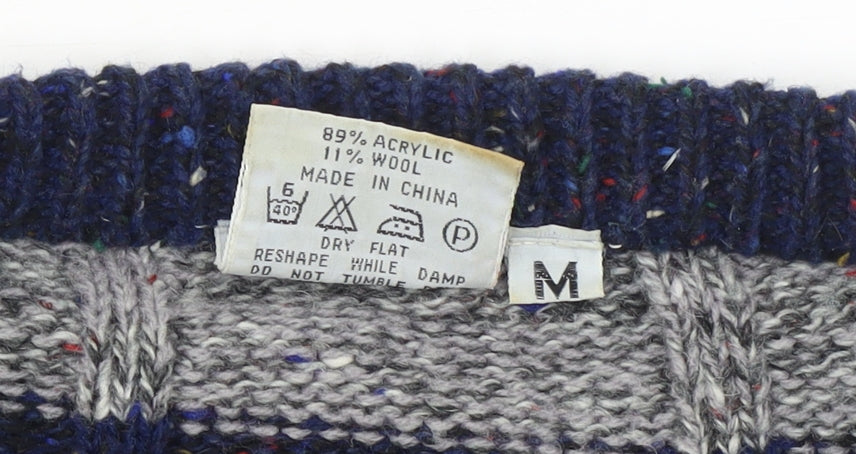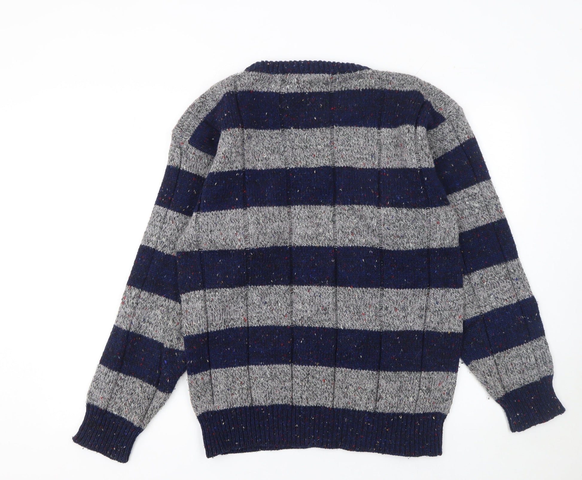 Avanti Men's Grey Blue Striped Chunky Knit Crew Neck Jumper M