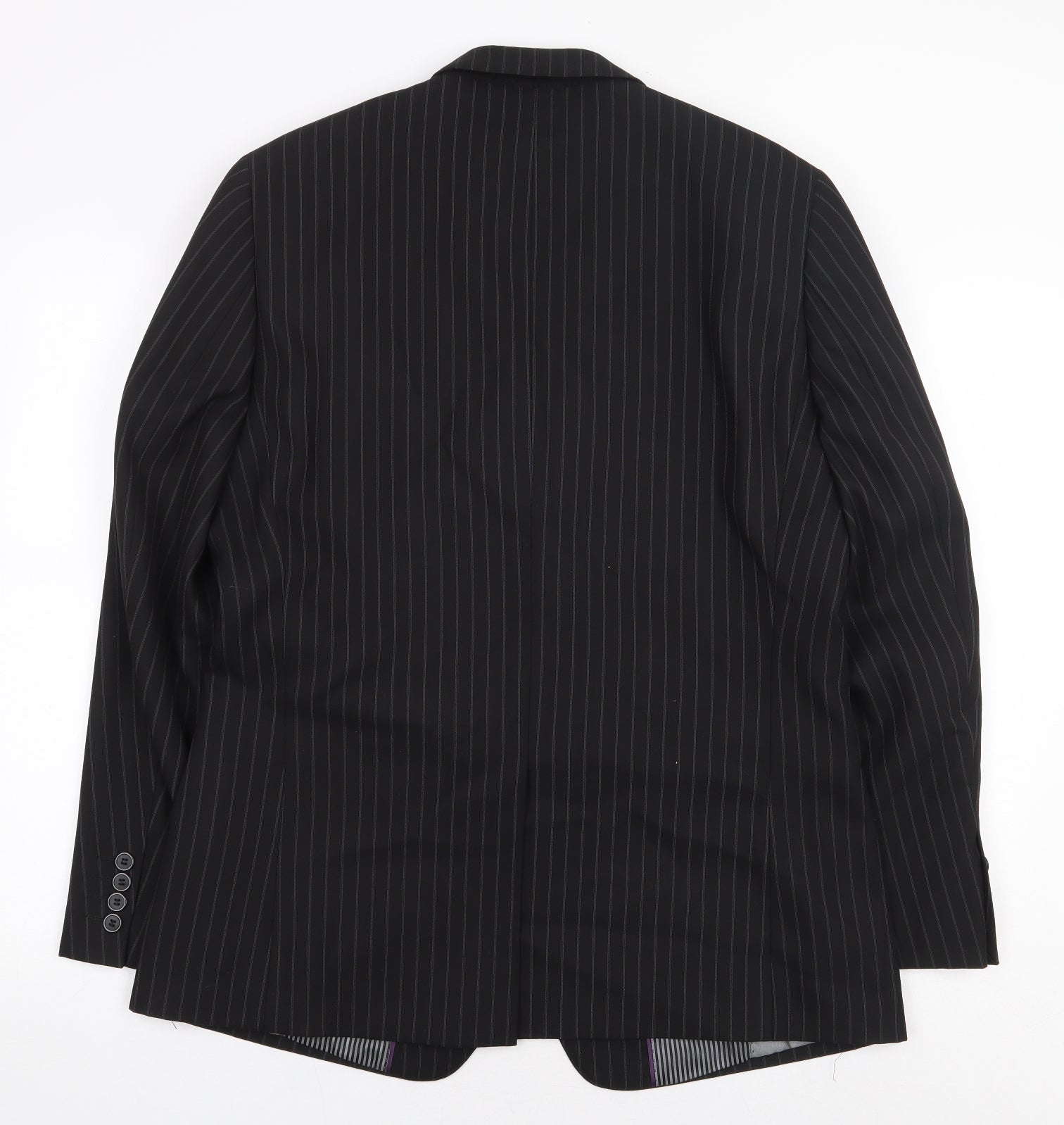 Avenue Mens Black Striped Polyester Jacket Blazer Size 42