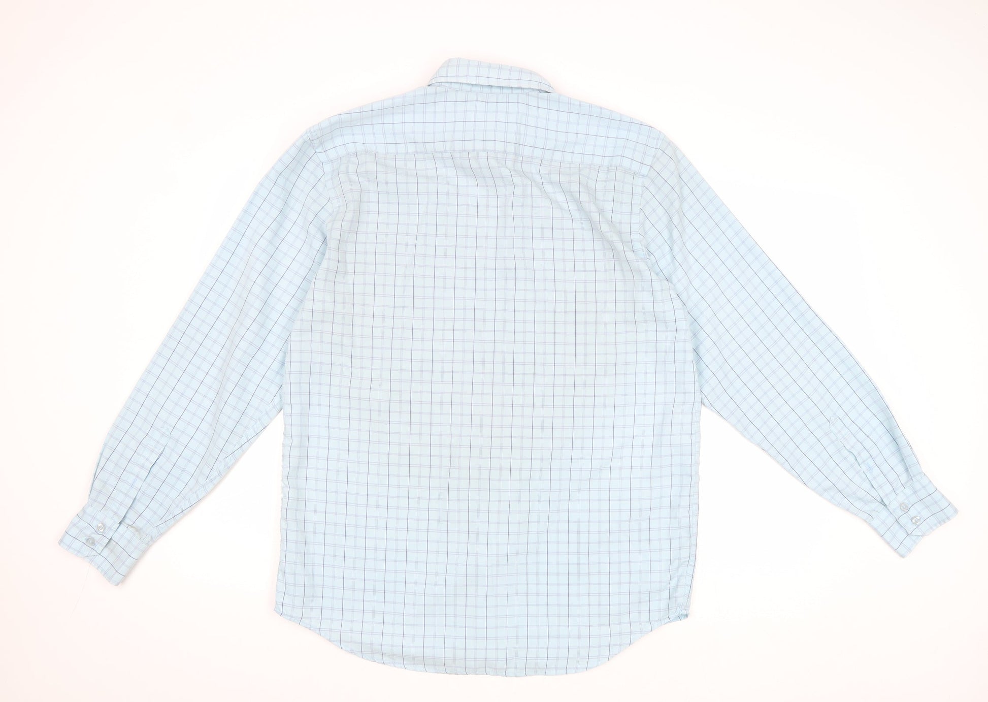 Avenue Mens Blue Check Cotton Button-Up Size M Collared Button