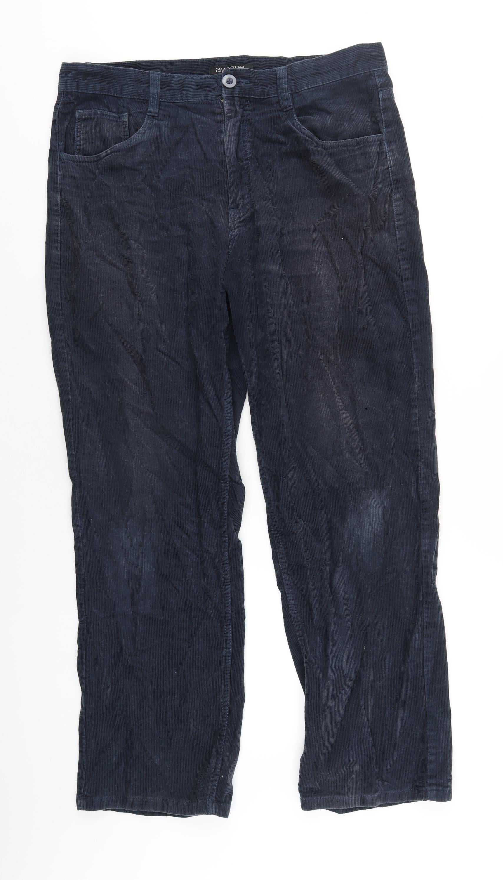 Avenue Mens Blue Cotton Trousers Size 36 in L31 in Regular Zip
