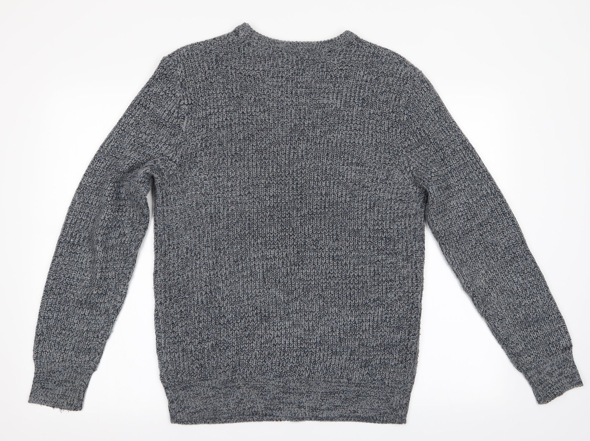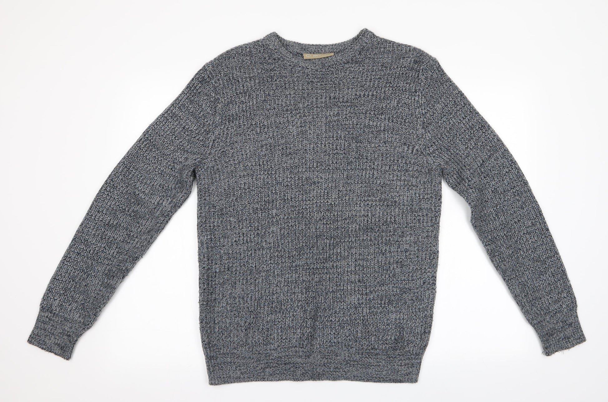 Avenue Mens Blue Herringbone Pullover Jumper Size M