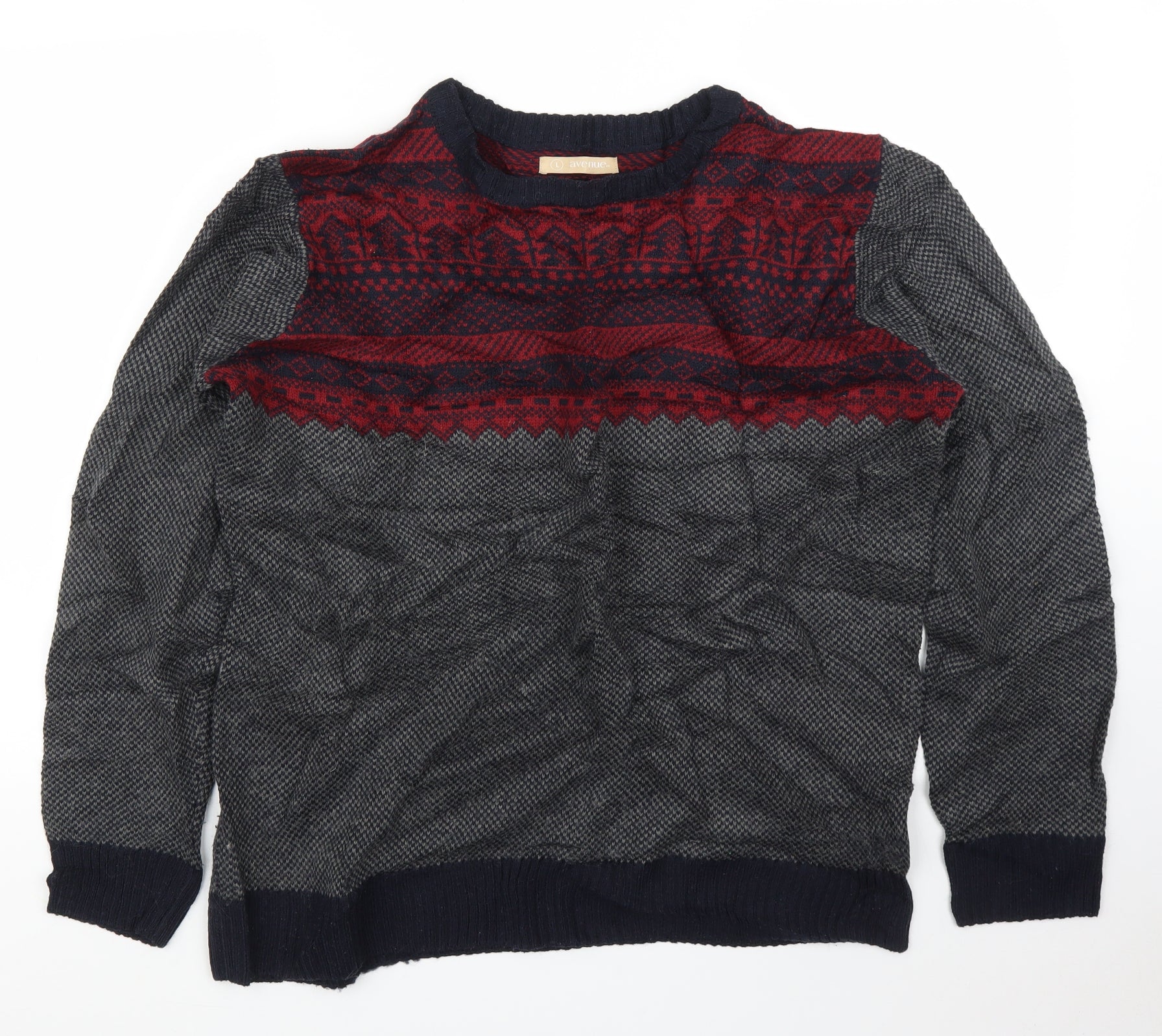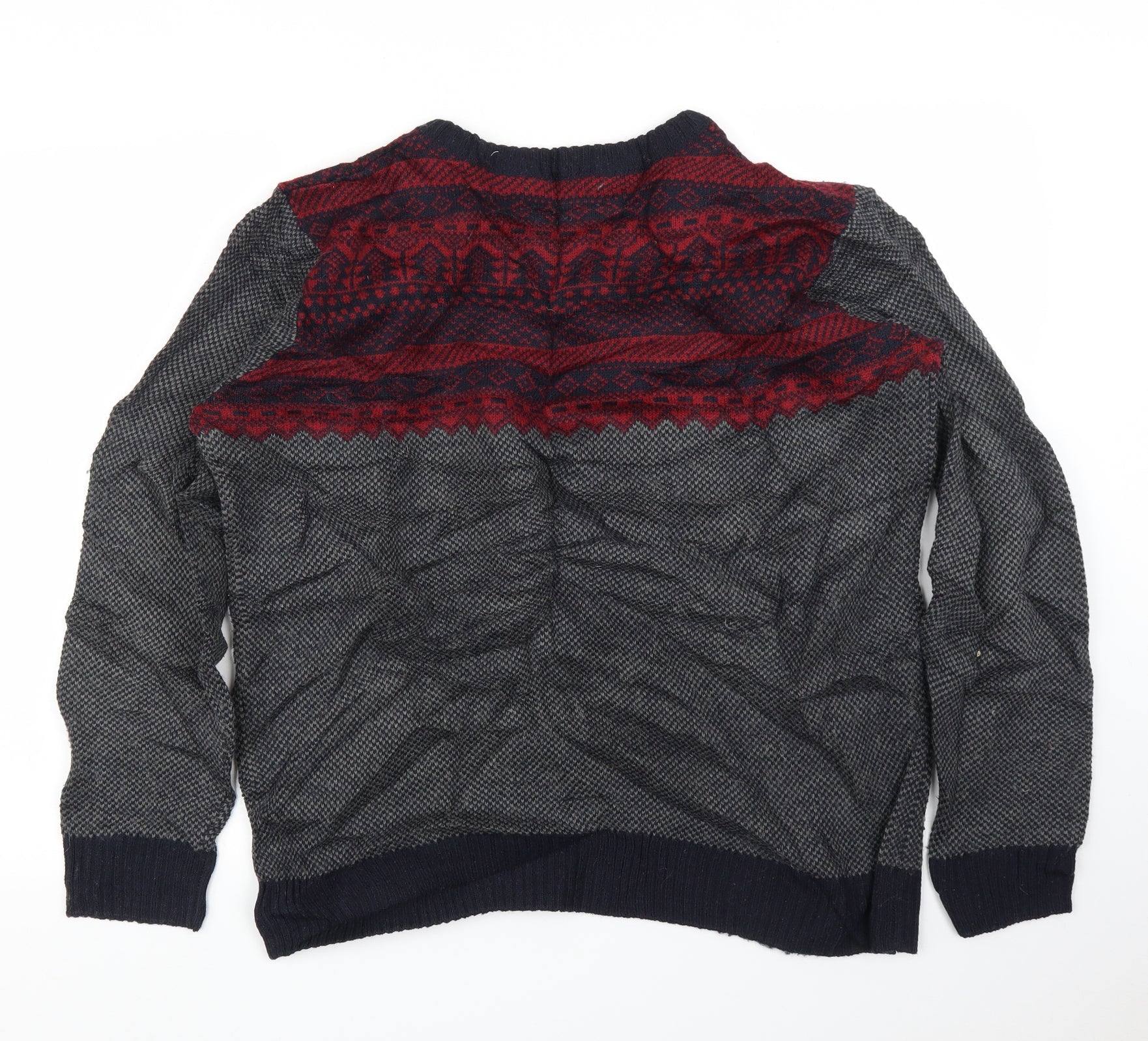 Avenue Mens Grey Fair Isle Pullover Jumper Size L