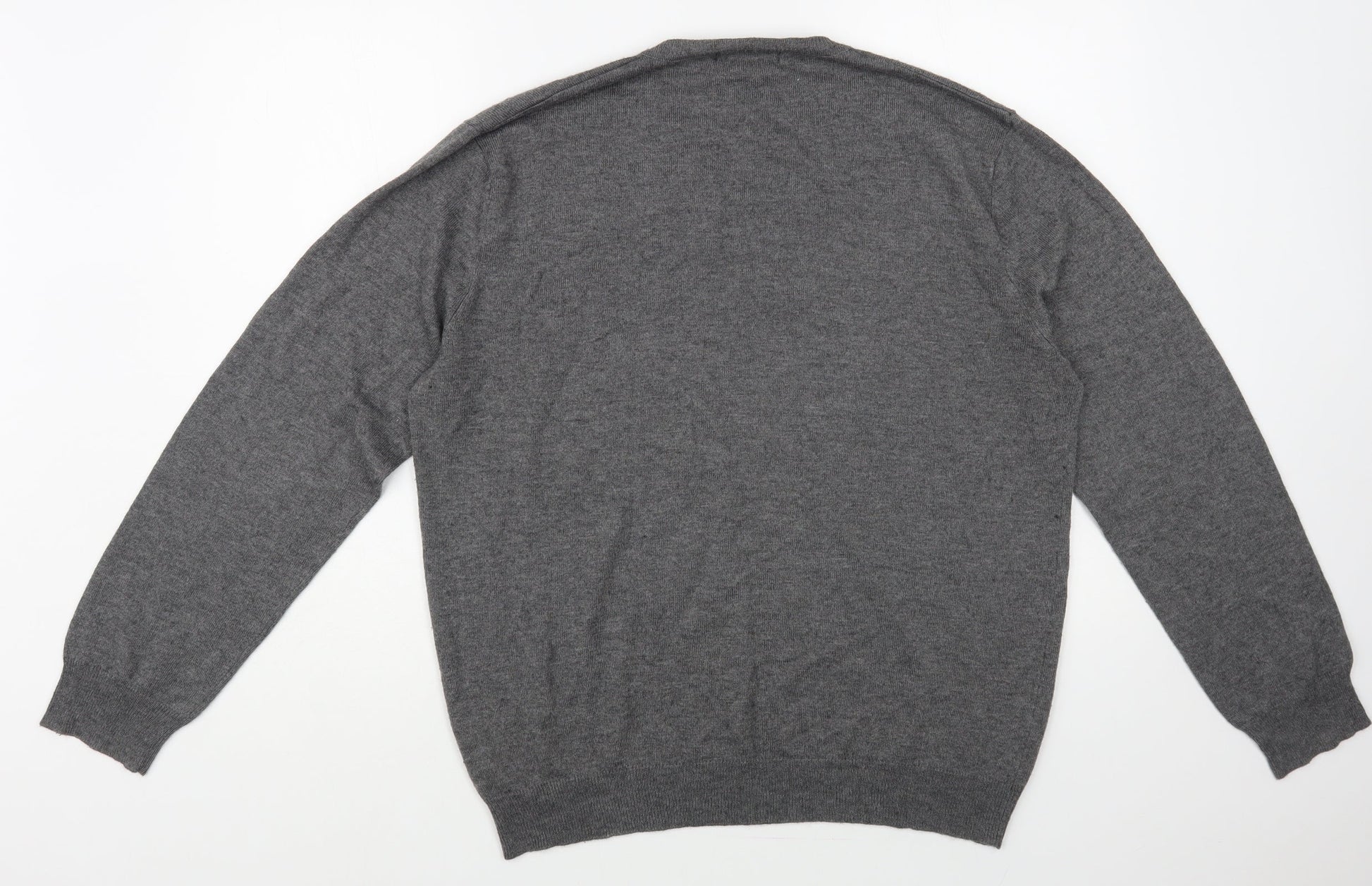 Avenue Mens Grey V-Neck Acrylic Pullover Jumper Size M