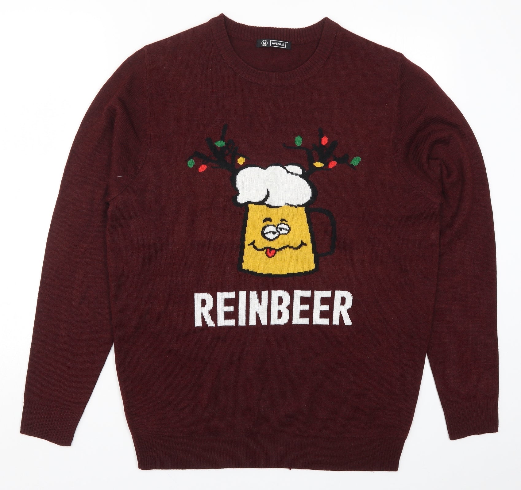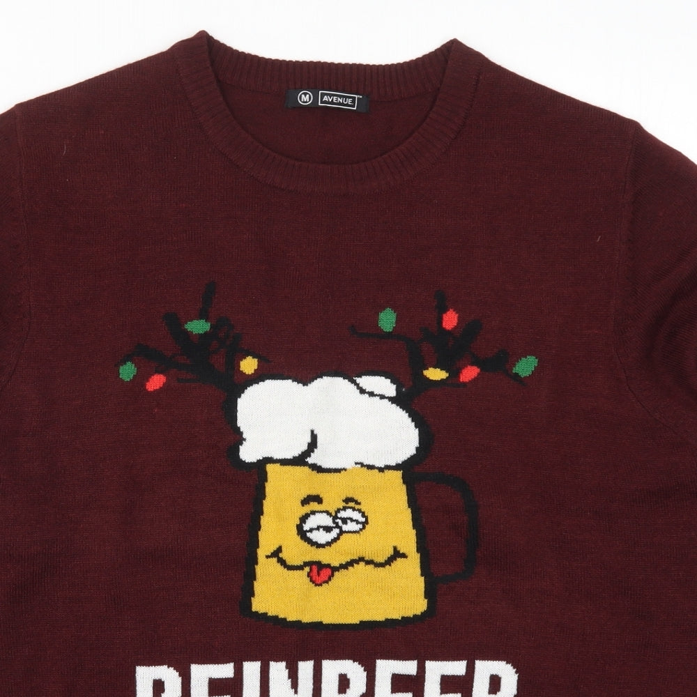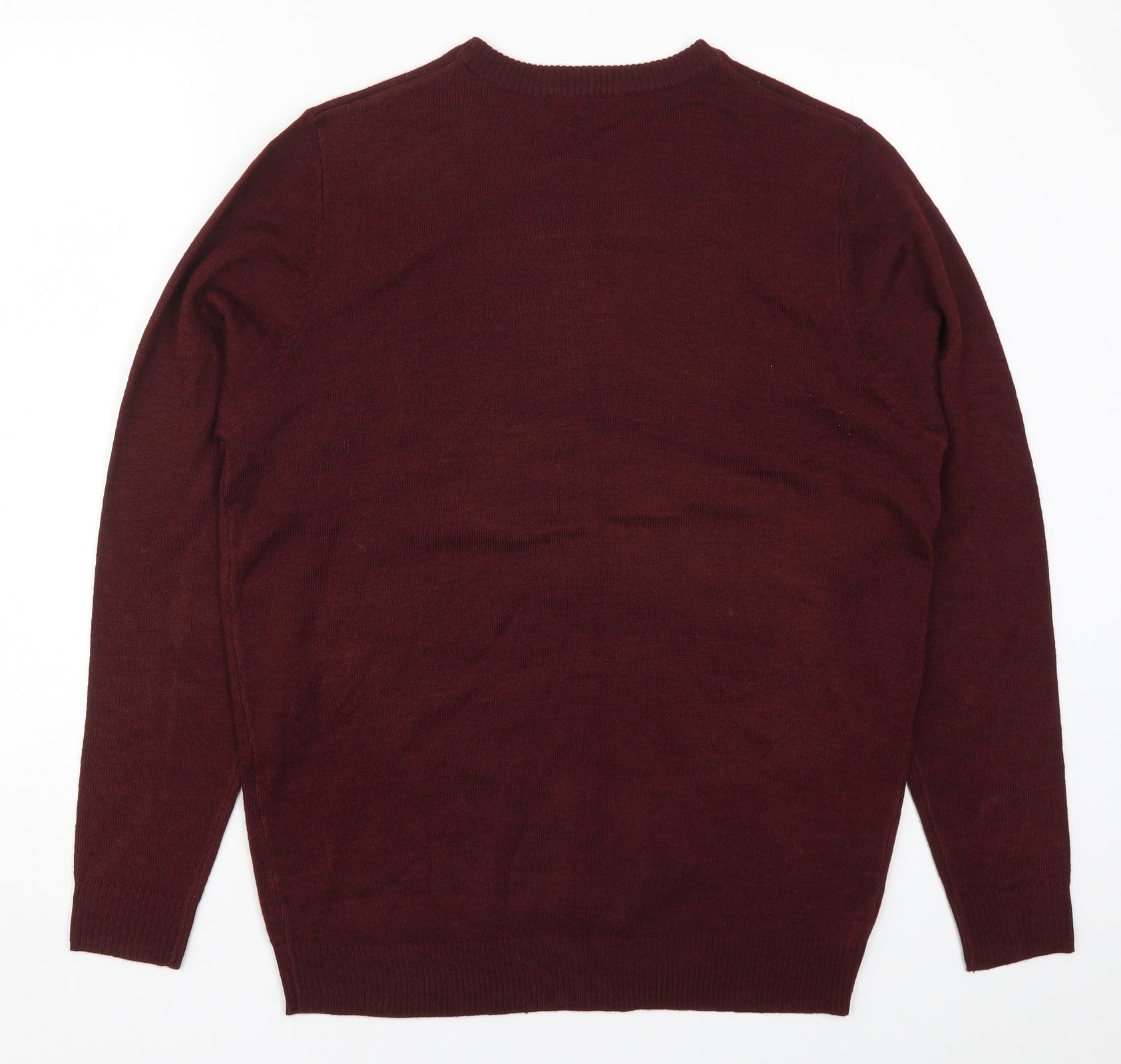 Avenue Mens Red Knit Pullover Jumper Size M - Reinbeer