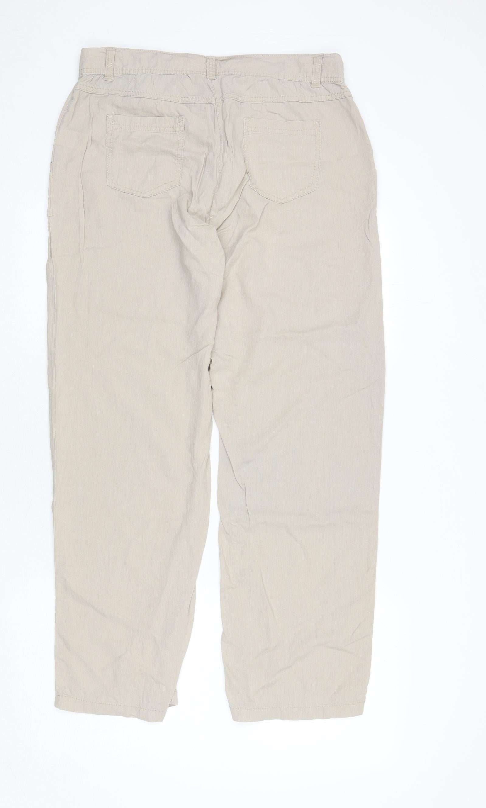 Avenue Womens Beige Linen Trousers Size M L28 in Regular Zip - Tie Front