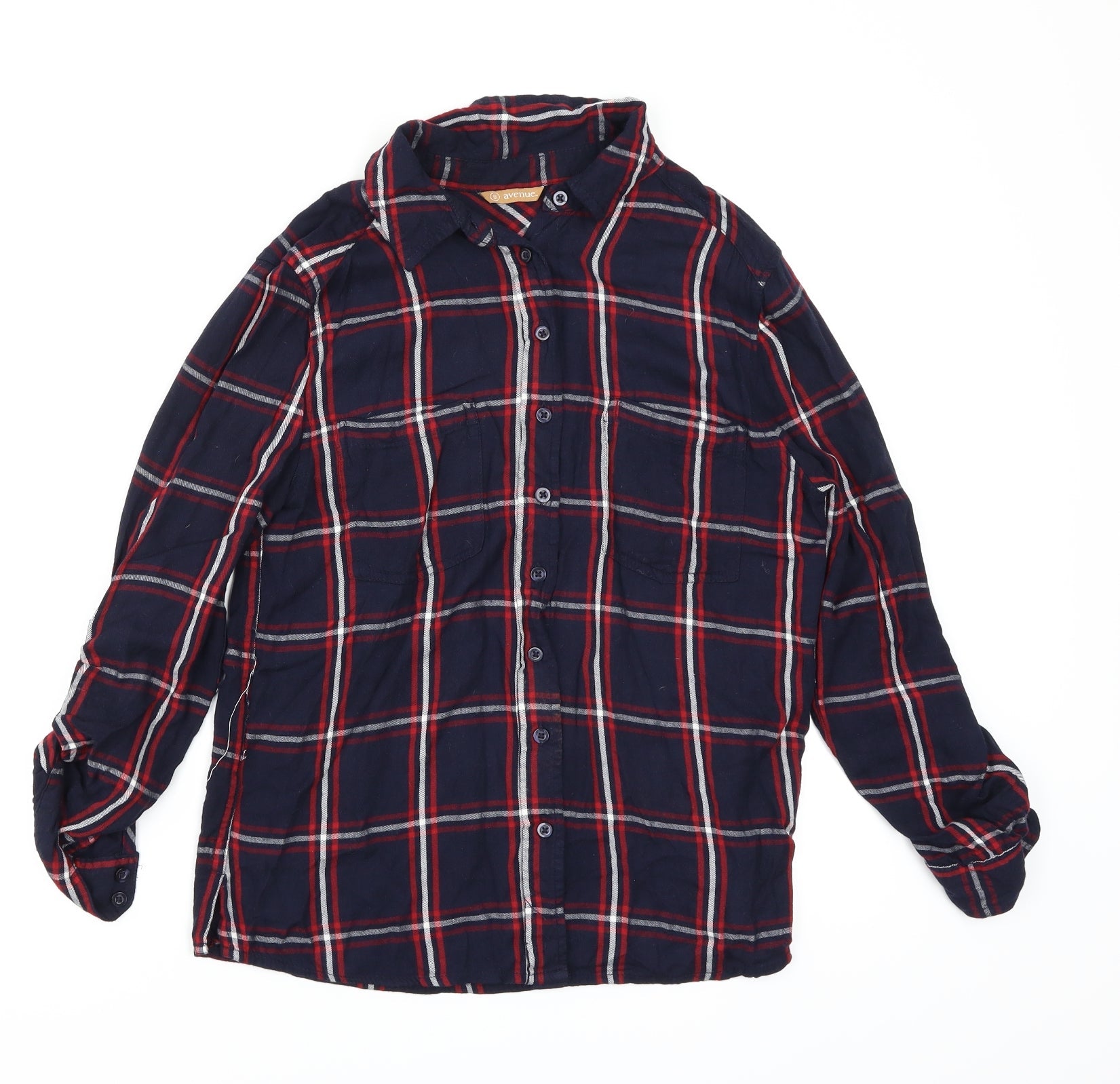 Avenue Womens Blue Check Basic Button-Up Size 8