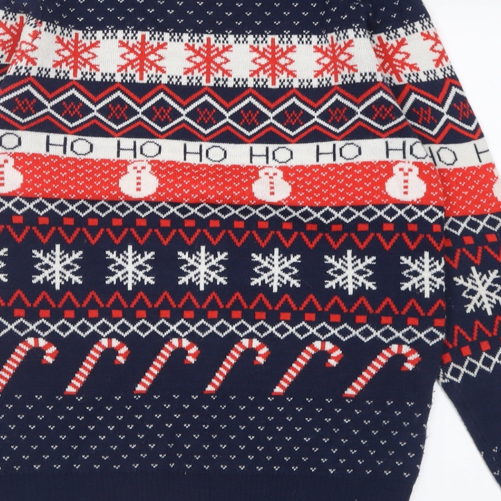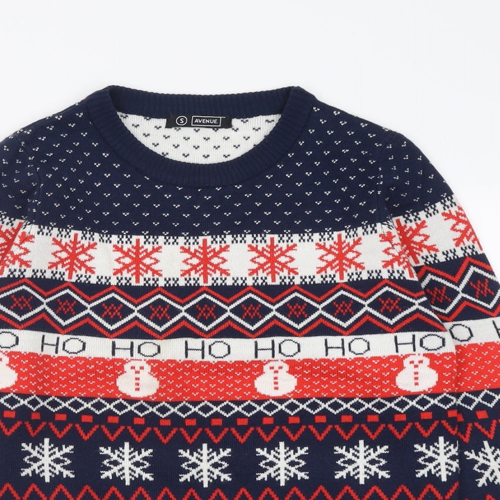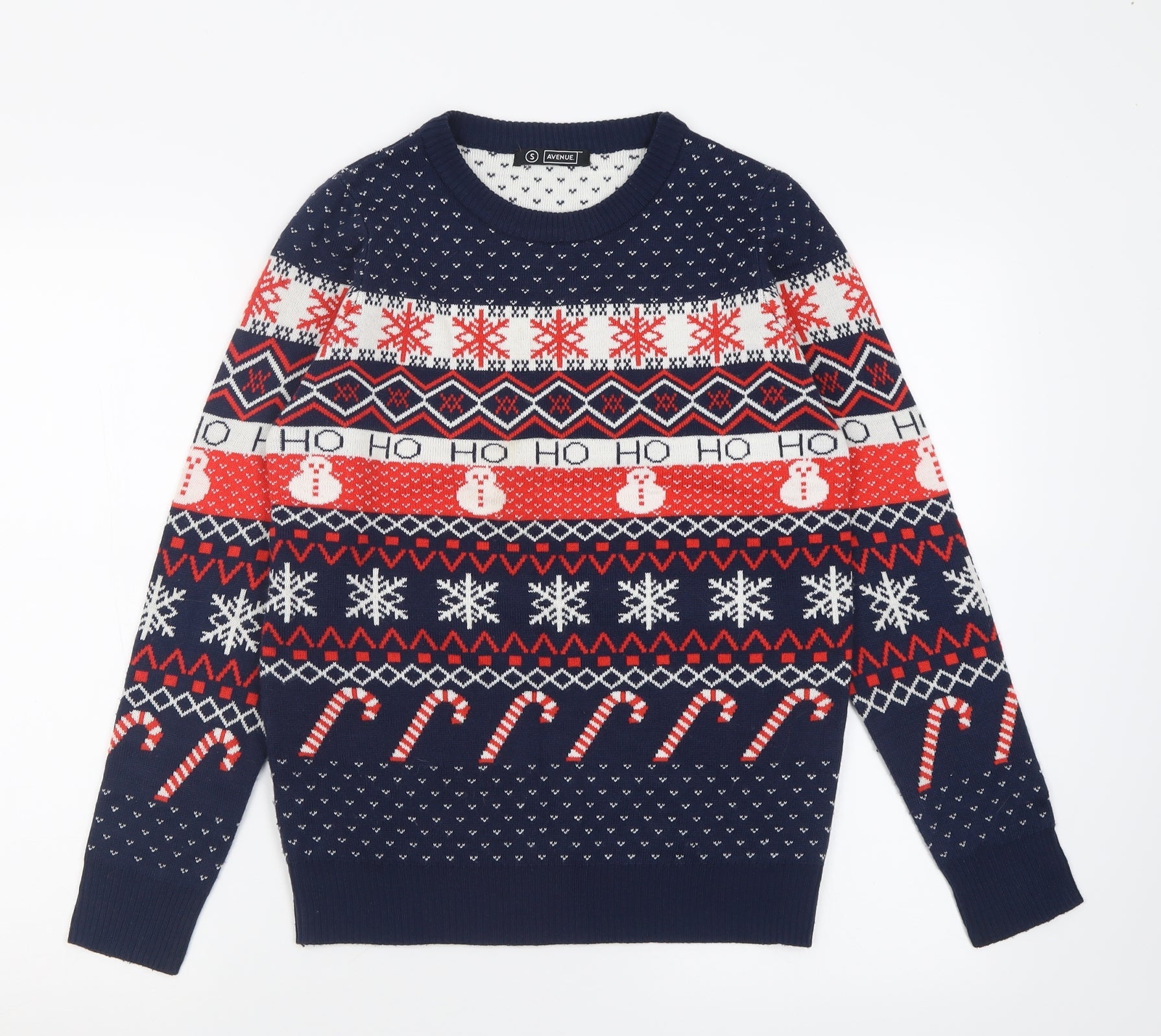 Avenue Womens Blue Crew Neck Geometric Acrylic Pullover Jumper Size S - chrismas jumper