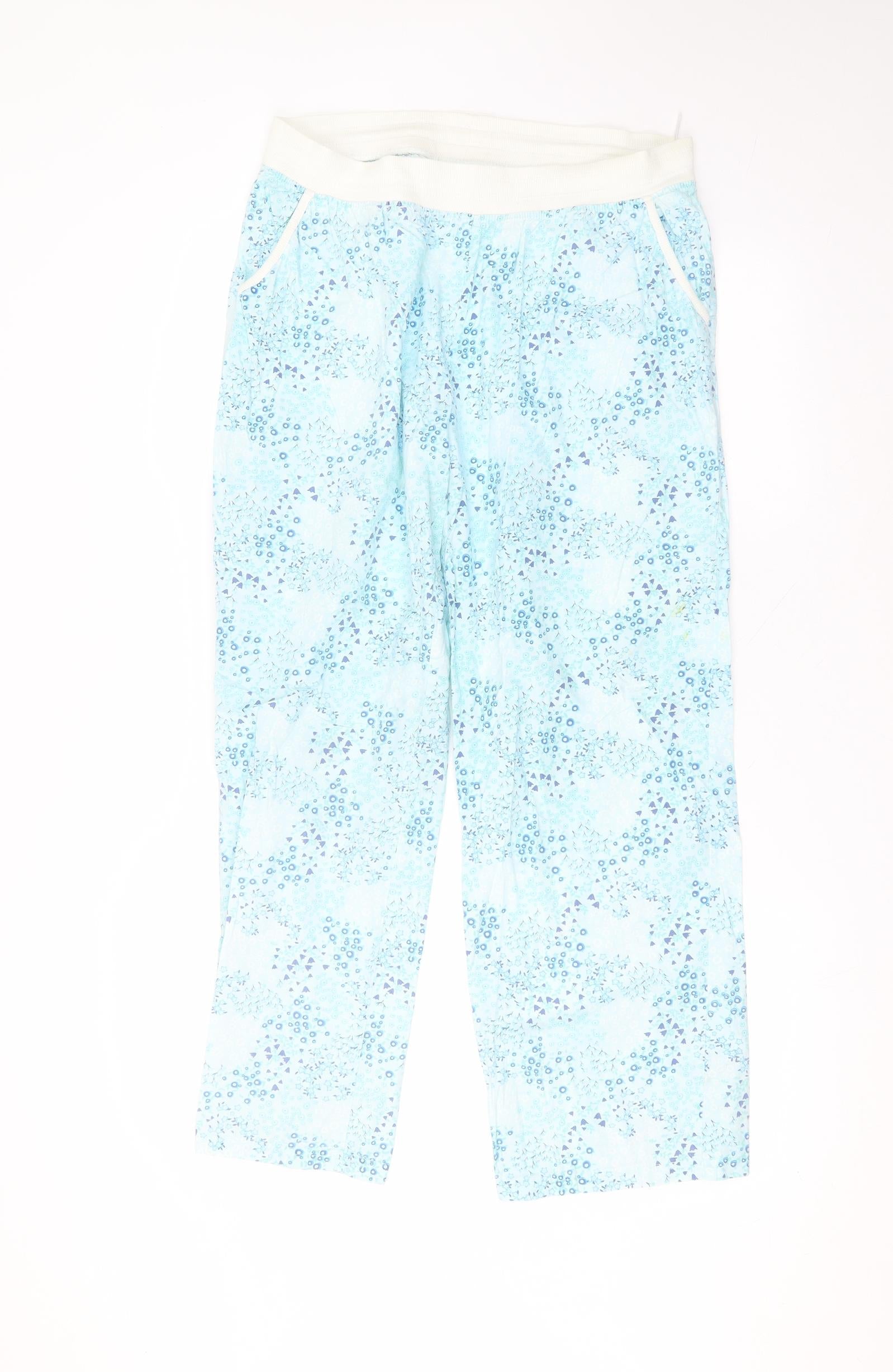 Avenue Womens Blue Floral Cotton Trousers Size 12 L25 in Regular