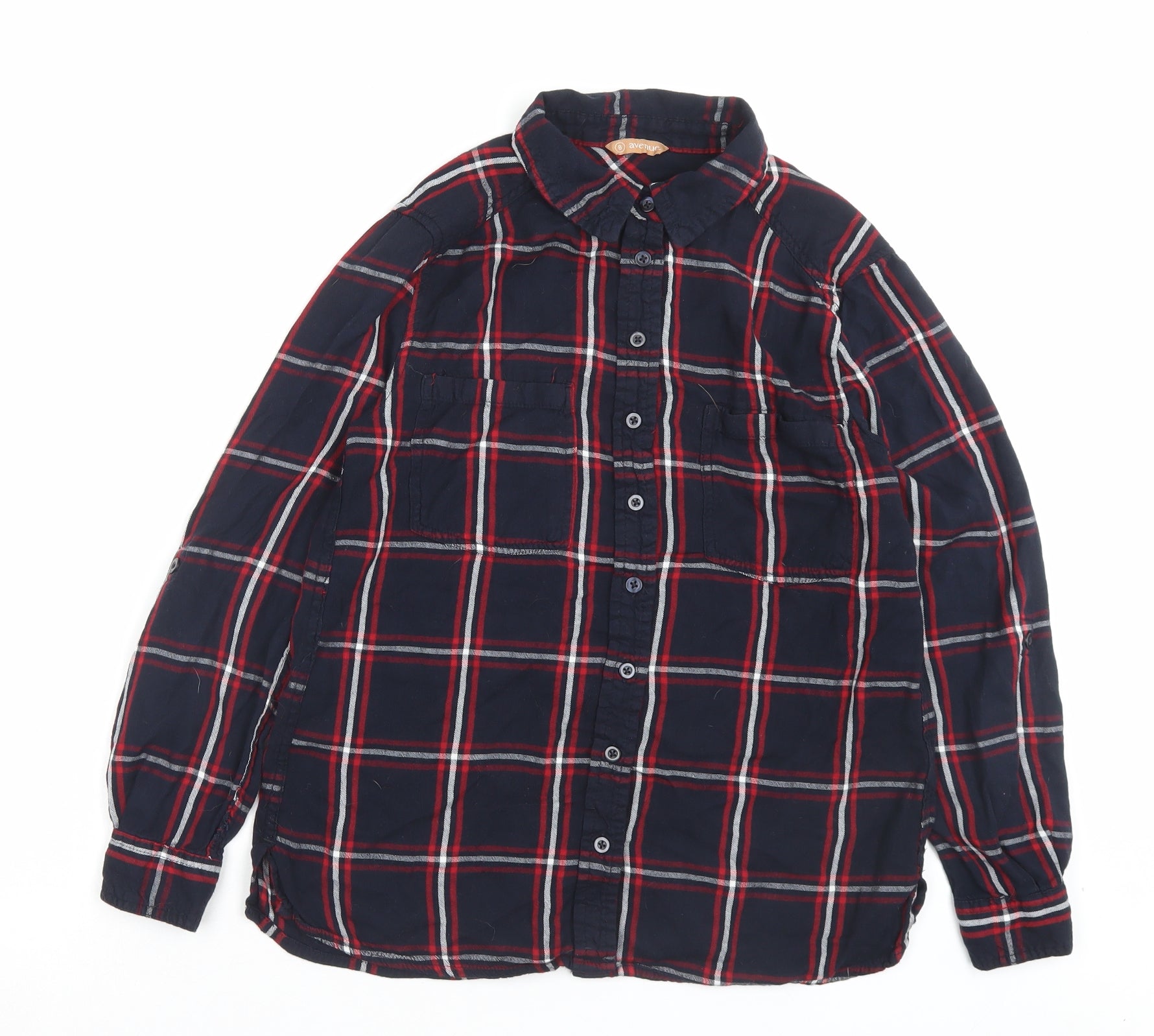 Avenue Womens Blue Plaid Viscose Basic Button-Up Size 8 Collared