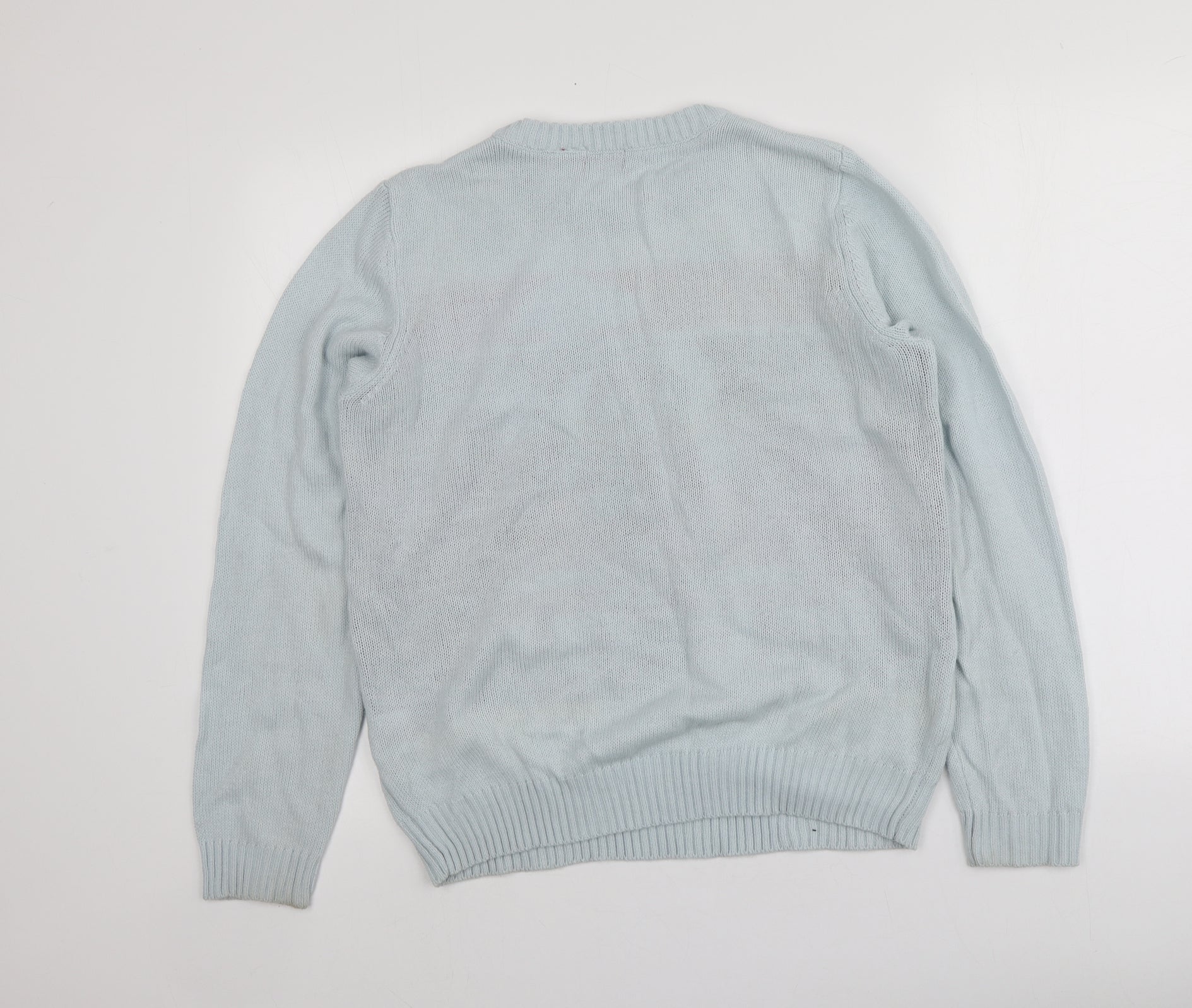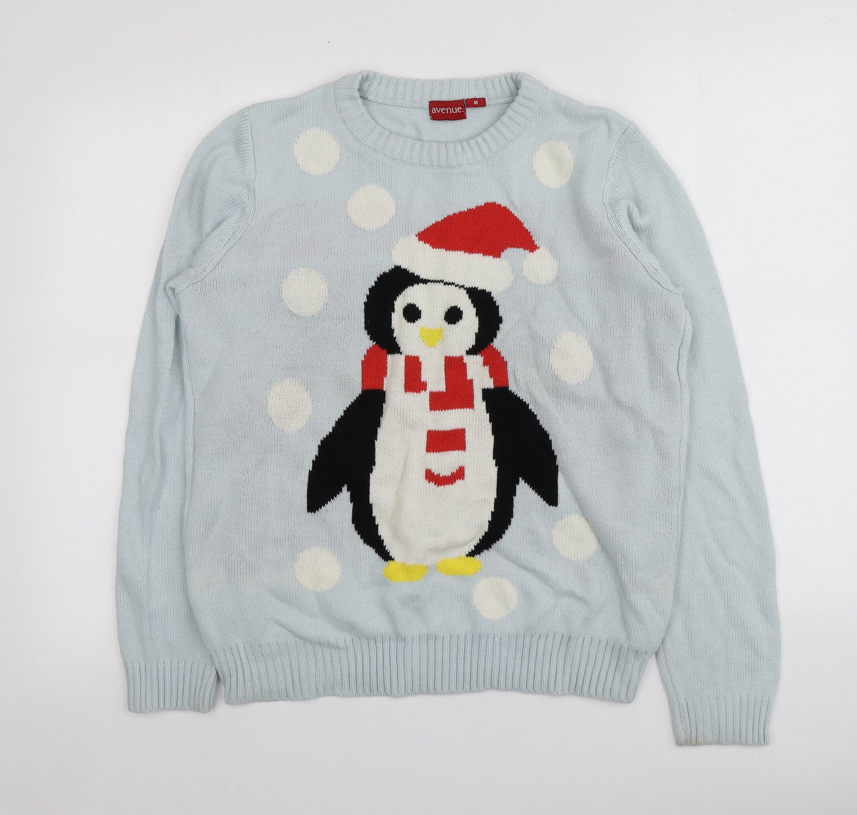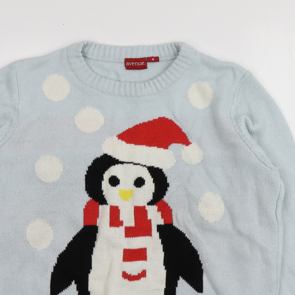 Avenue Womens Blue Round Neck Geometric Acrylic Pullover Jumper Size M - Santa Jumper