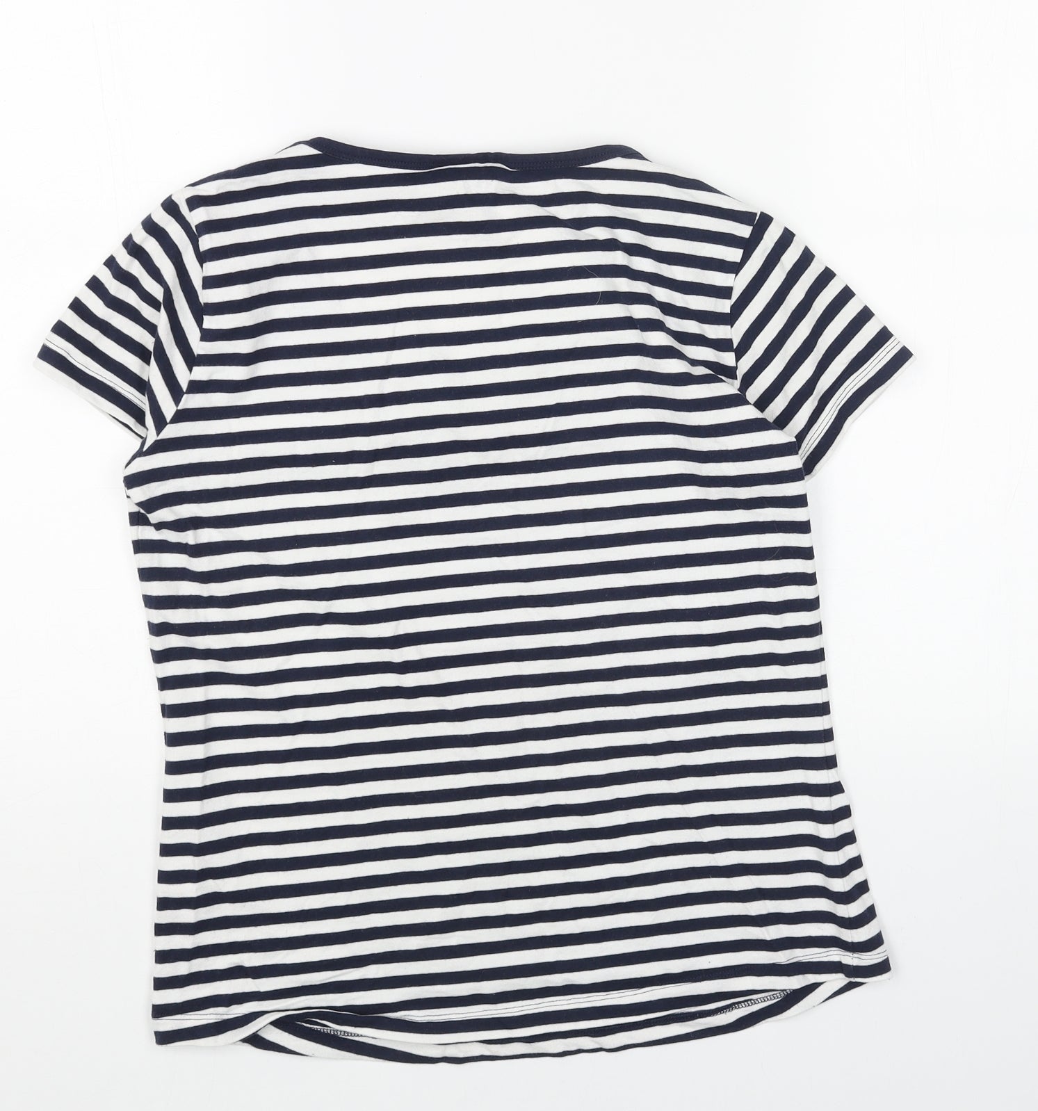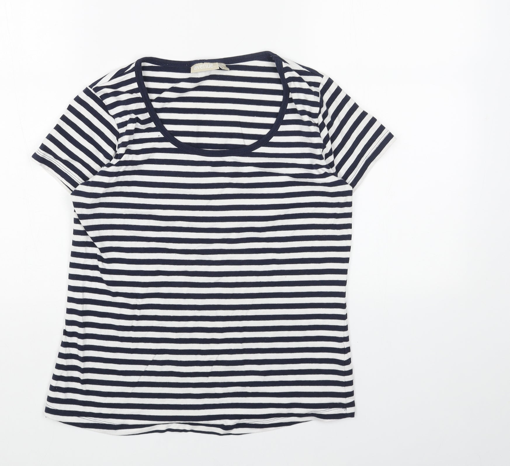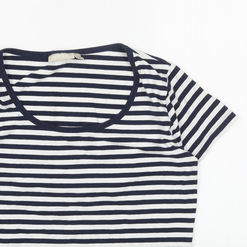 Avenue Womens Blue Striped Cotton Basic T-Shirt Size S Scoop Neck