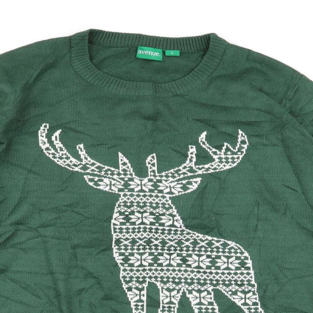 Avenue Womens Green Animal Print Pullover Jumper Size L