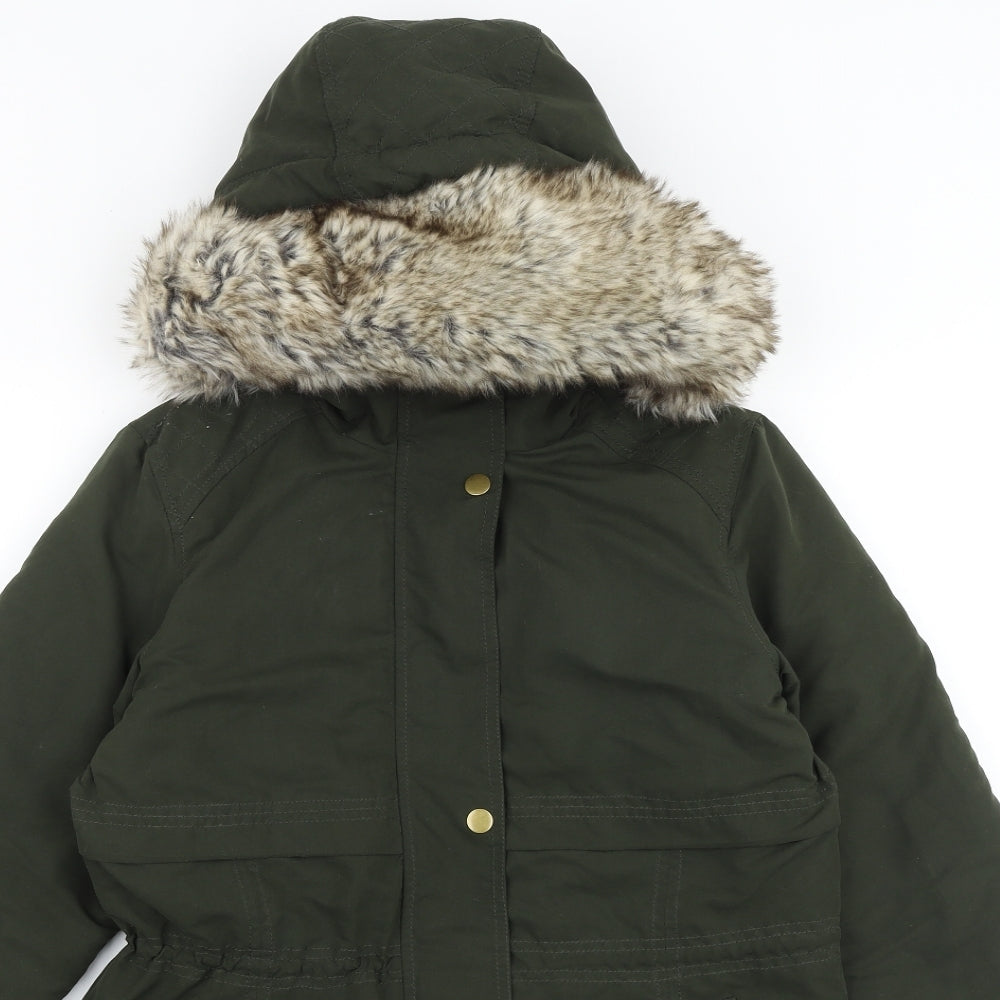 Avenue Womens Green Parka Coat Size 8 Zip
