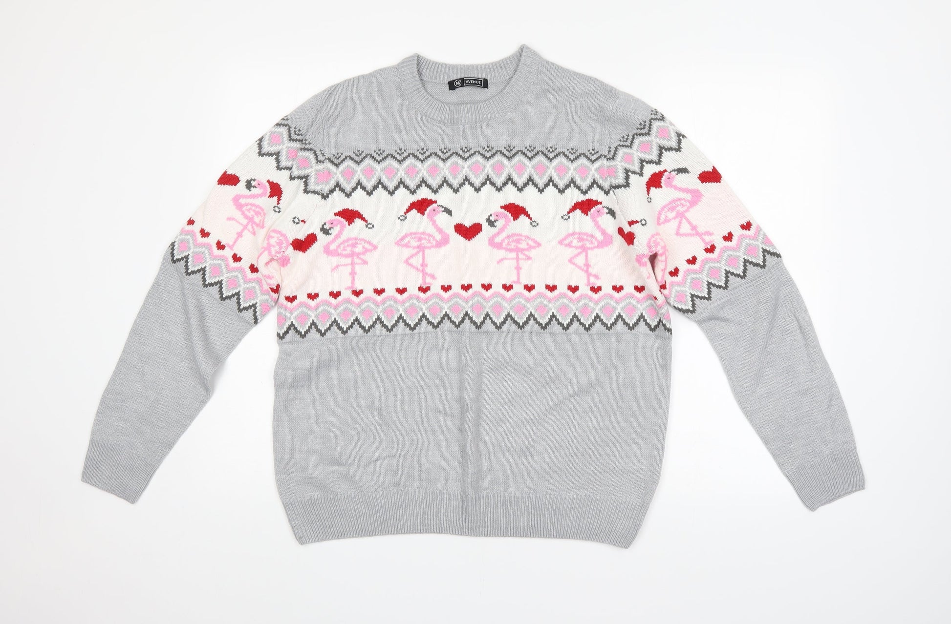 Avenue Womens Grey Argyle/Diamond Pullover Jumper Size M