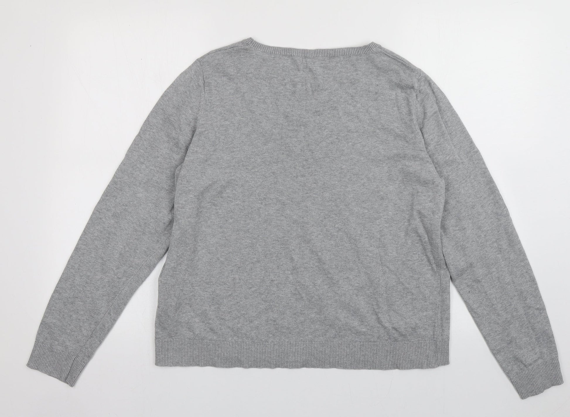 Avenue Womens Grey Crew Neck Cotton Pullover Jumper Size 16