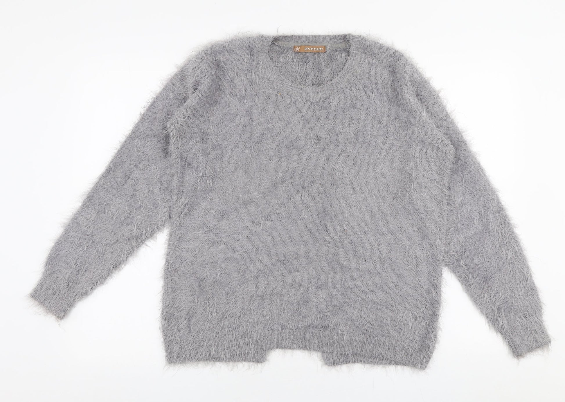Avenue Womens Grey Round Neck Polyamide Pullover Jumper Size 14