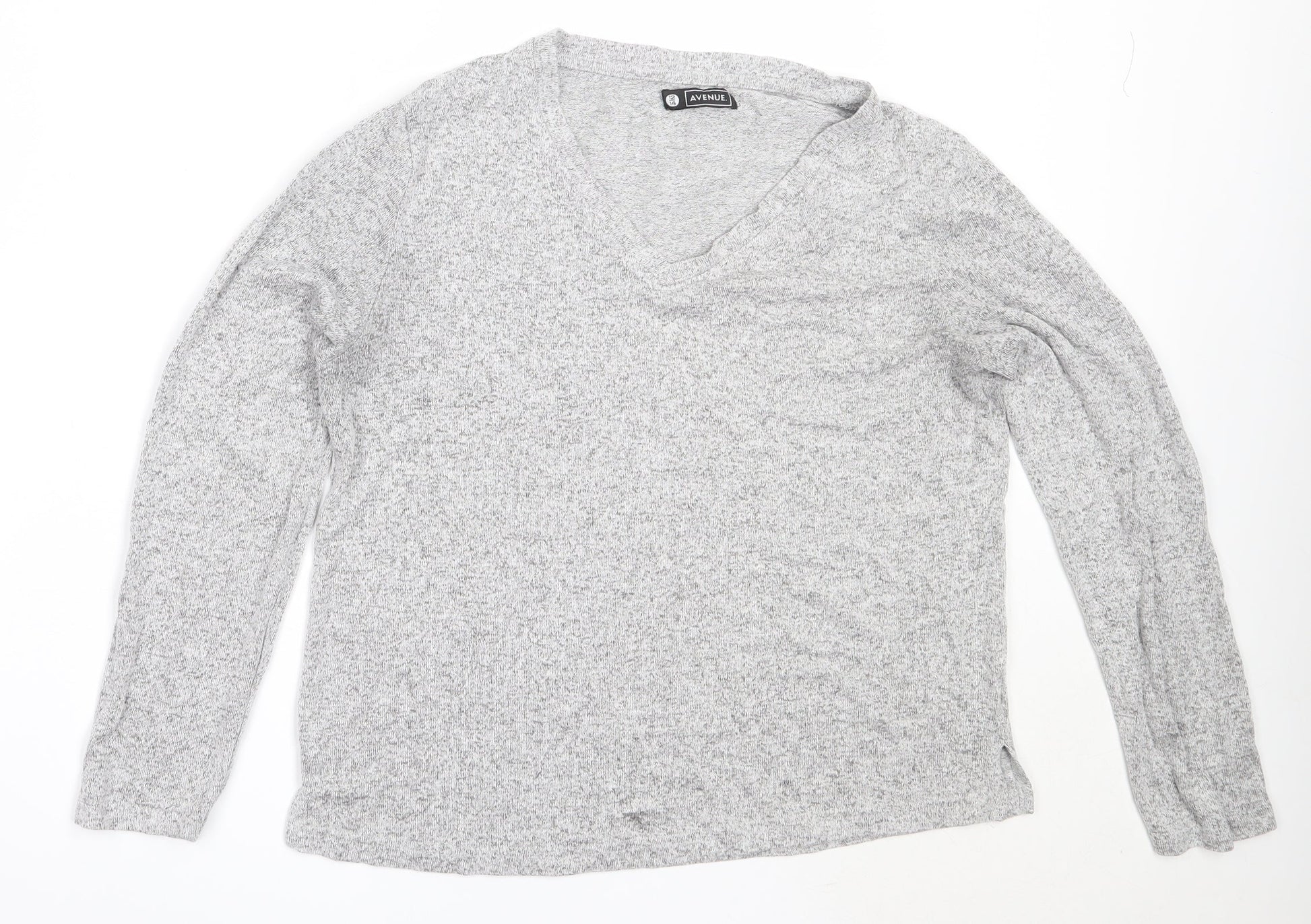 Avenue Womens Grey V-Neck Viscose Pullover Jumper Size 12