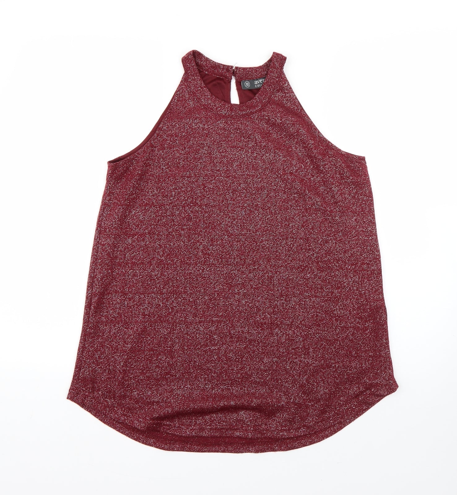 Avenue Womens Red Polyester Basic Blouse Size 10 Round Neck