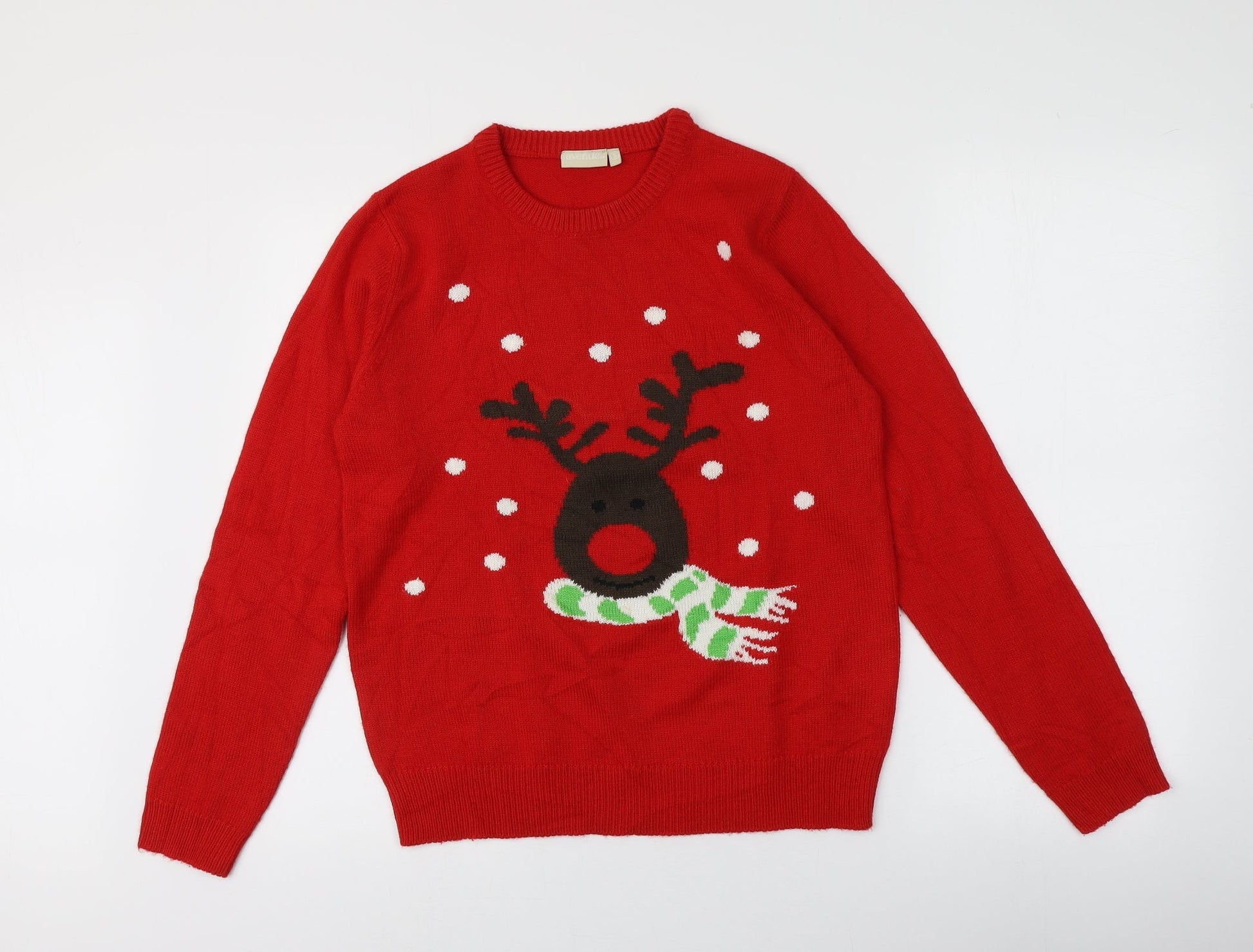 Avenue Womens Red Round Neck Acrylic Pullover Jumper Size 8