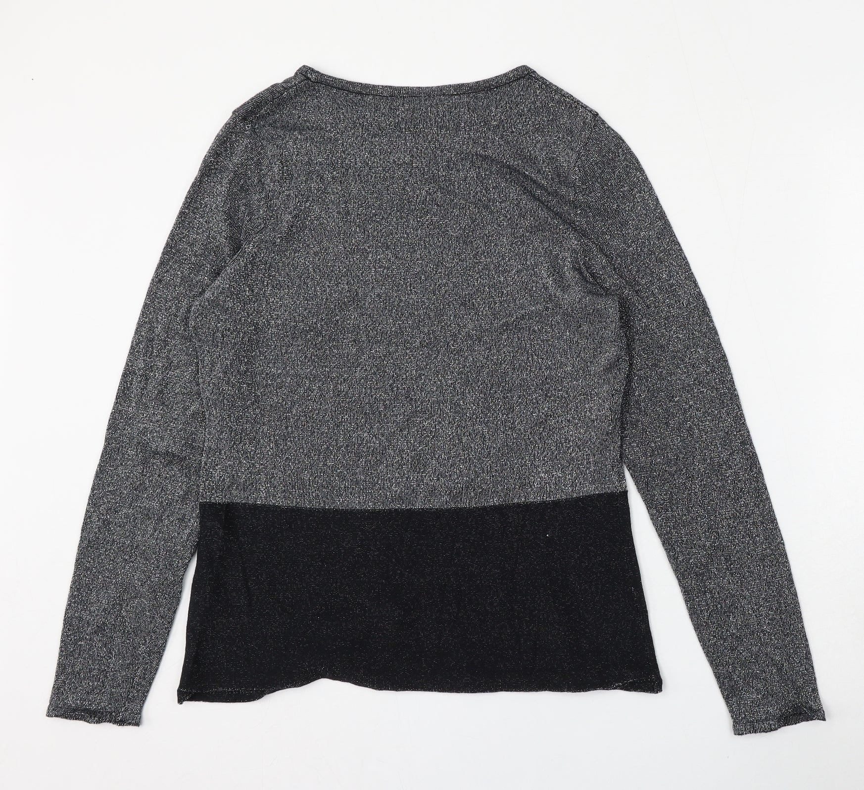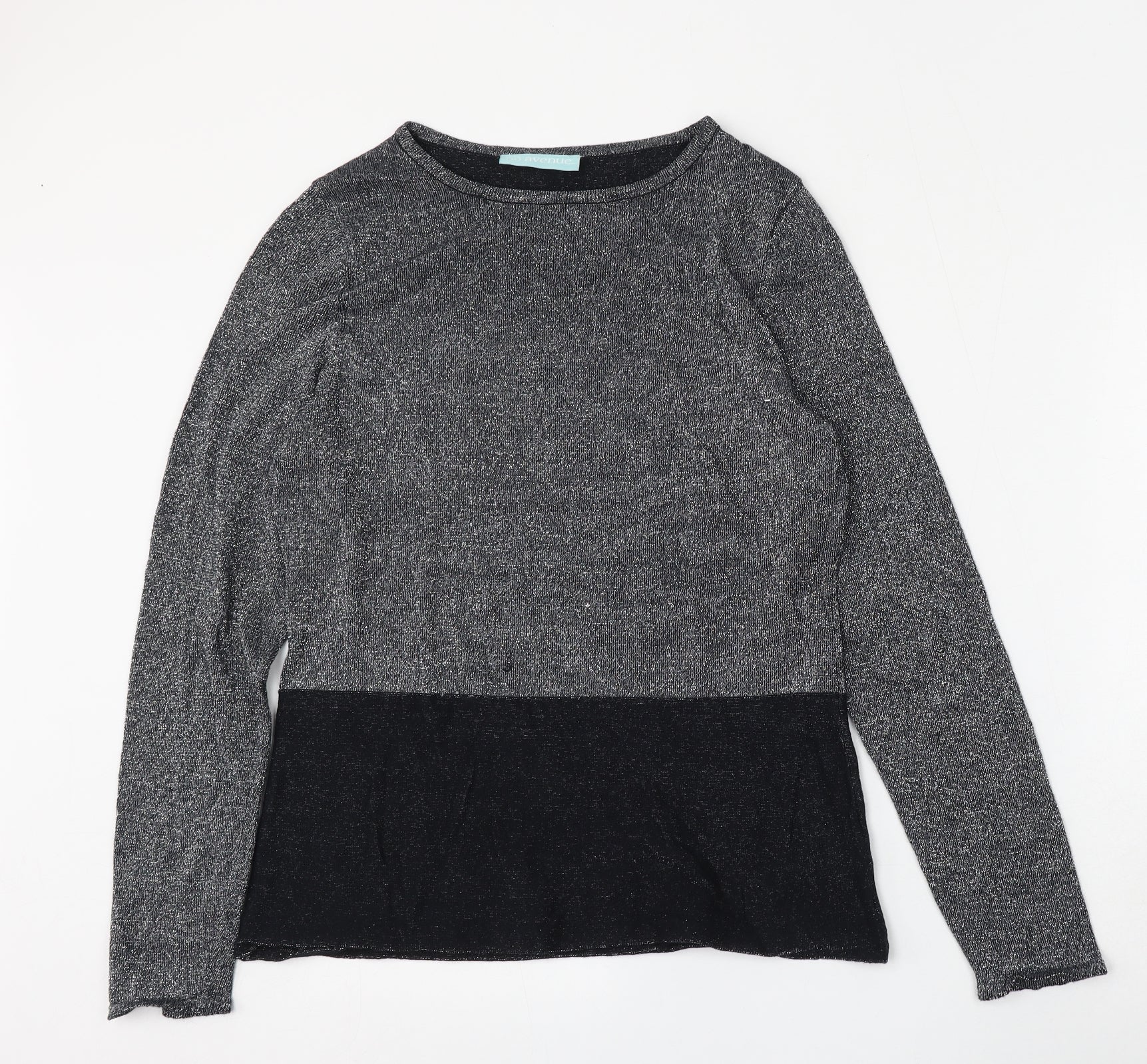 Avenue Womens Silver Round Neck Cotton Pullover Jumper Size 12