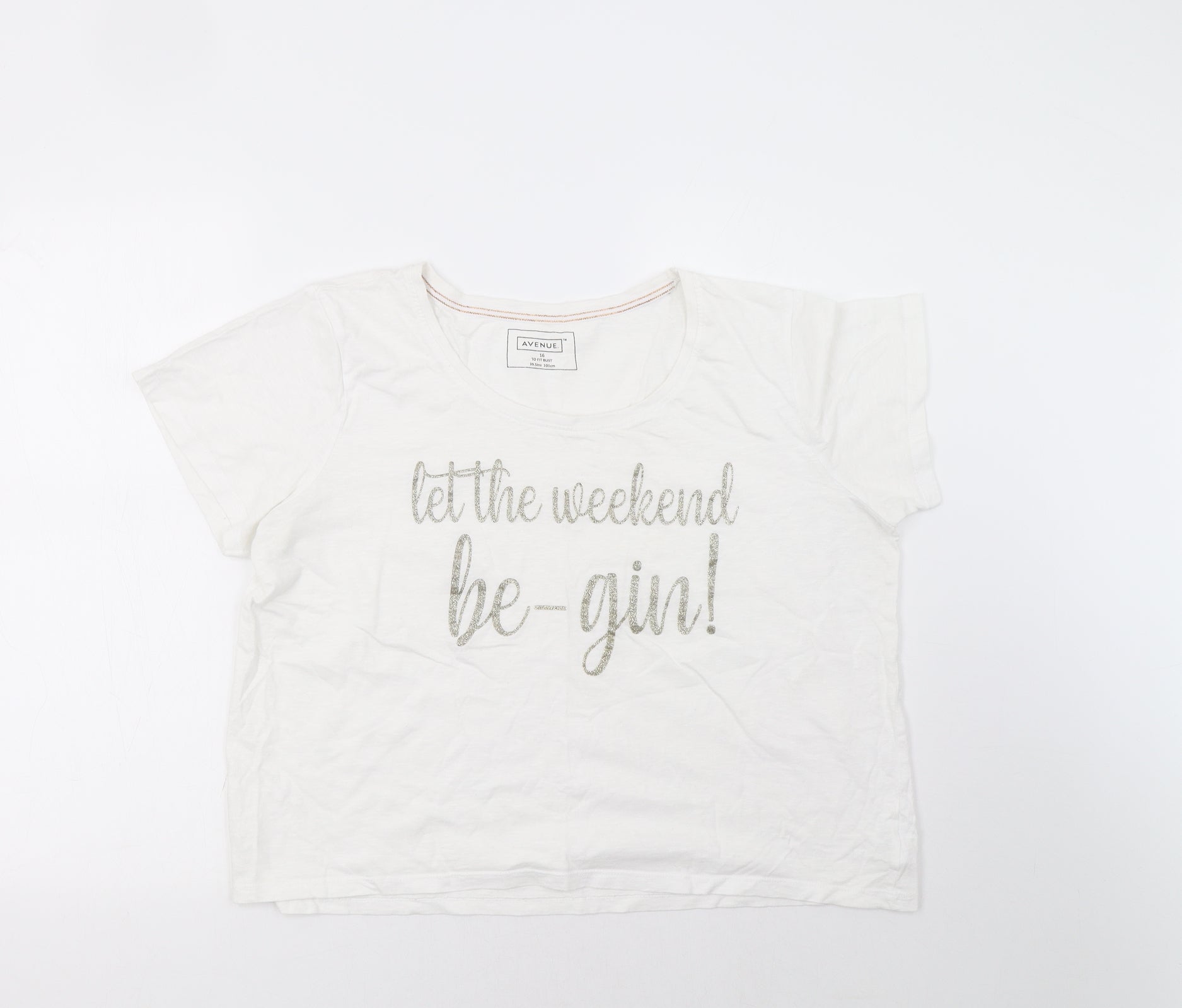 Avenue Womens White Cropped T-Shirt Size 16