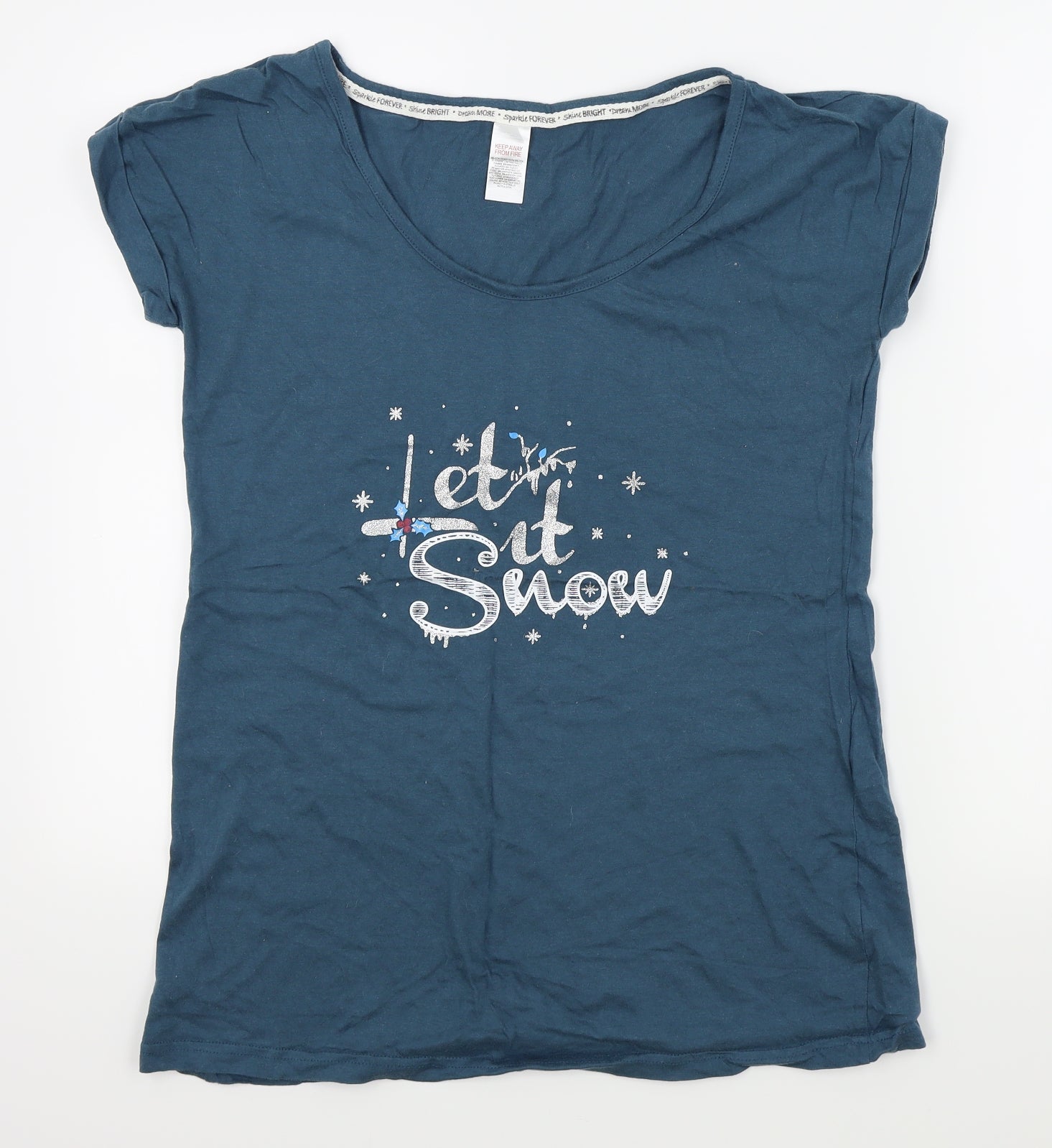 Avon Womens Blue Houndstooth Basic T-Shirt Size 10 - LET IT SNOW