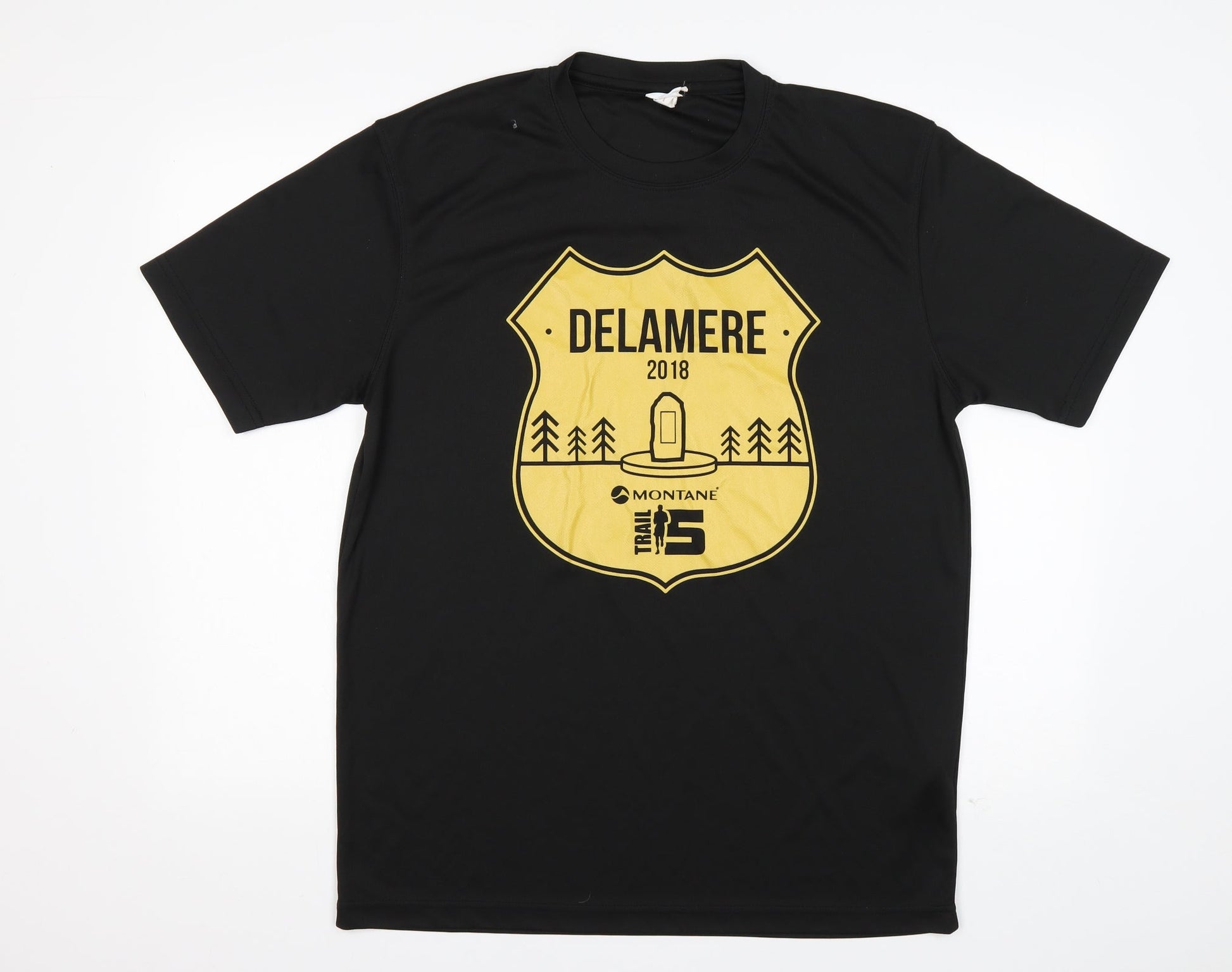 Awdis Mens Black Polyester Basic T-Shirt Size L Round Neck