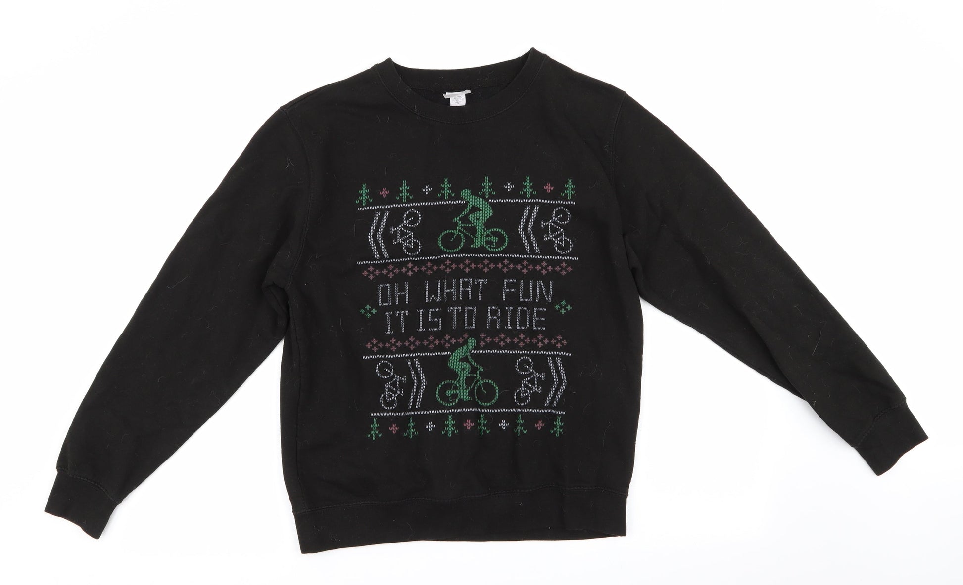 Awdis Mens Black Pullover Sweatshirt Size S - Christmas Bicycle