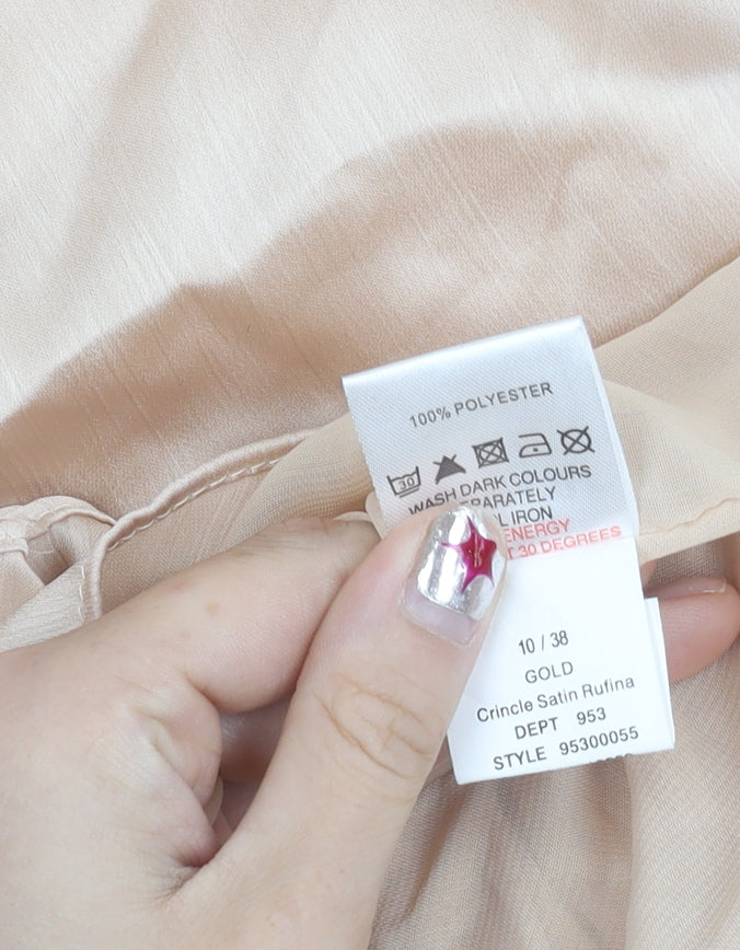 Awear Women’s Beige Shift Dress Size 10 Sleeveless Ruffle Scoop Neck