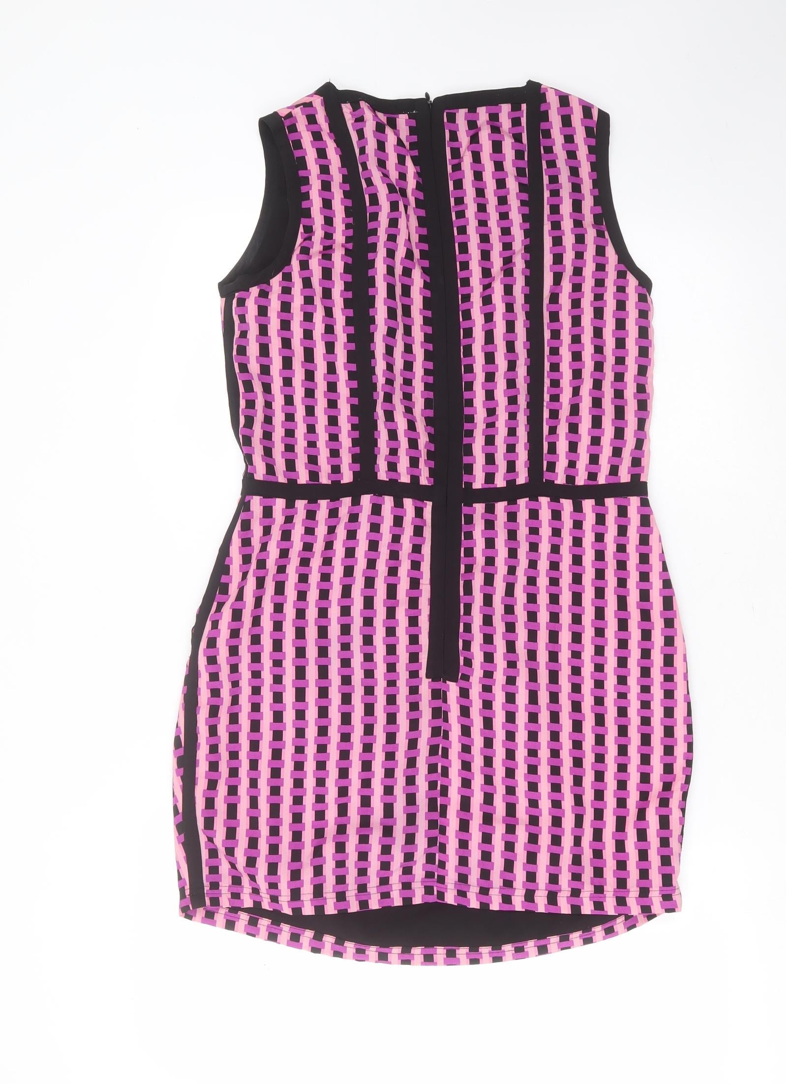 Awear Womens Purple Geometric Polyester Shift Size 10 Round Neck