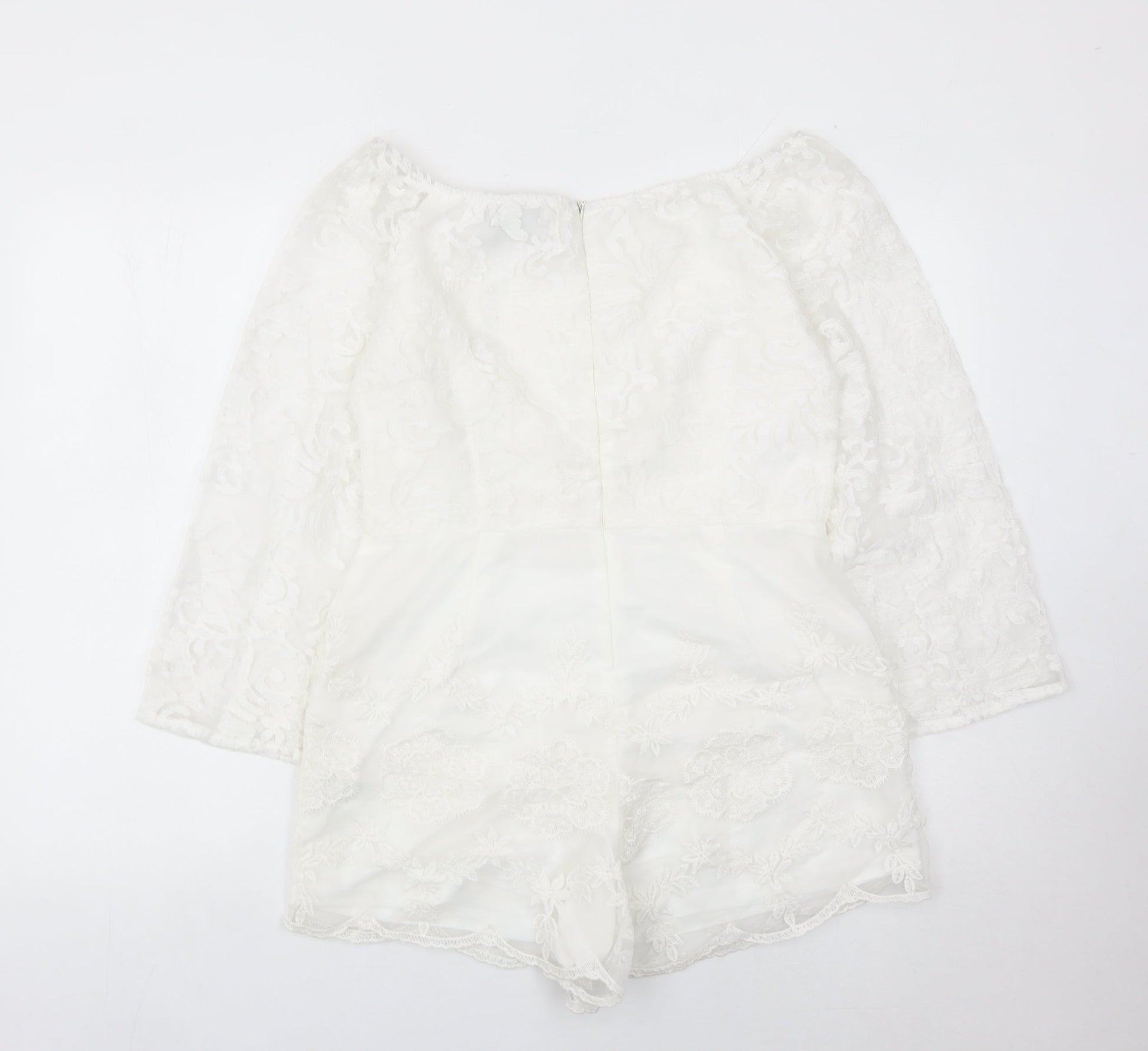 AX Paris Women White Lace Playsuit Size 14 Long Sleeve Party Romper