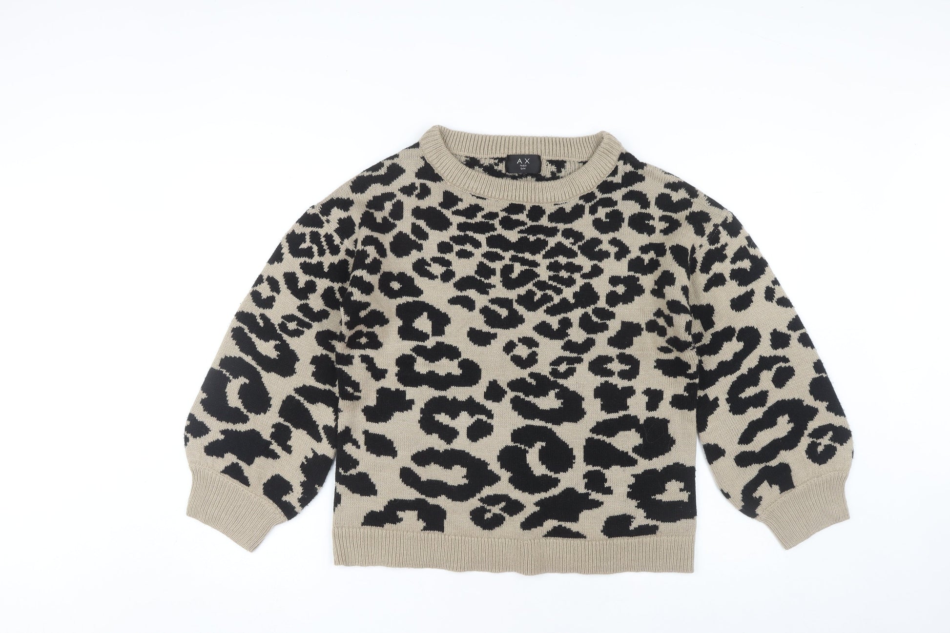 AX Paris Women's Beige Animal Print Pullover Jumper S/M