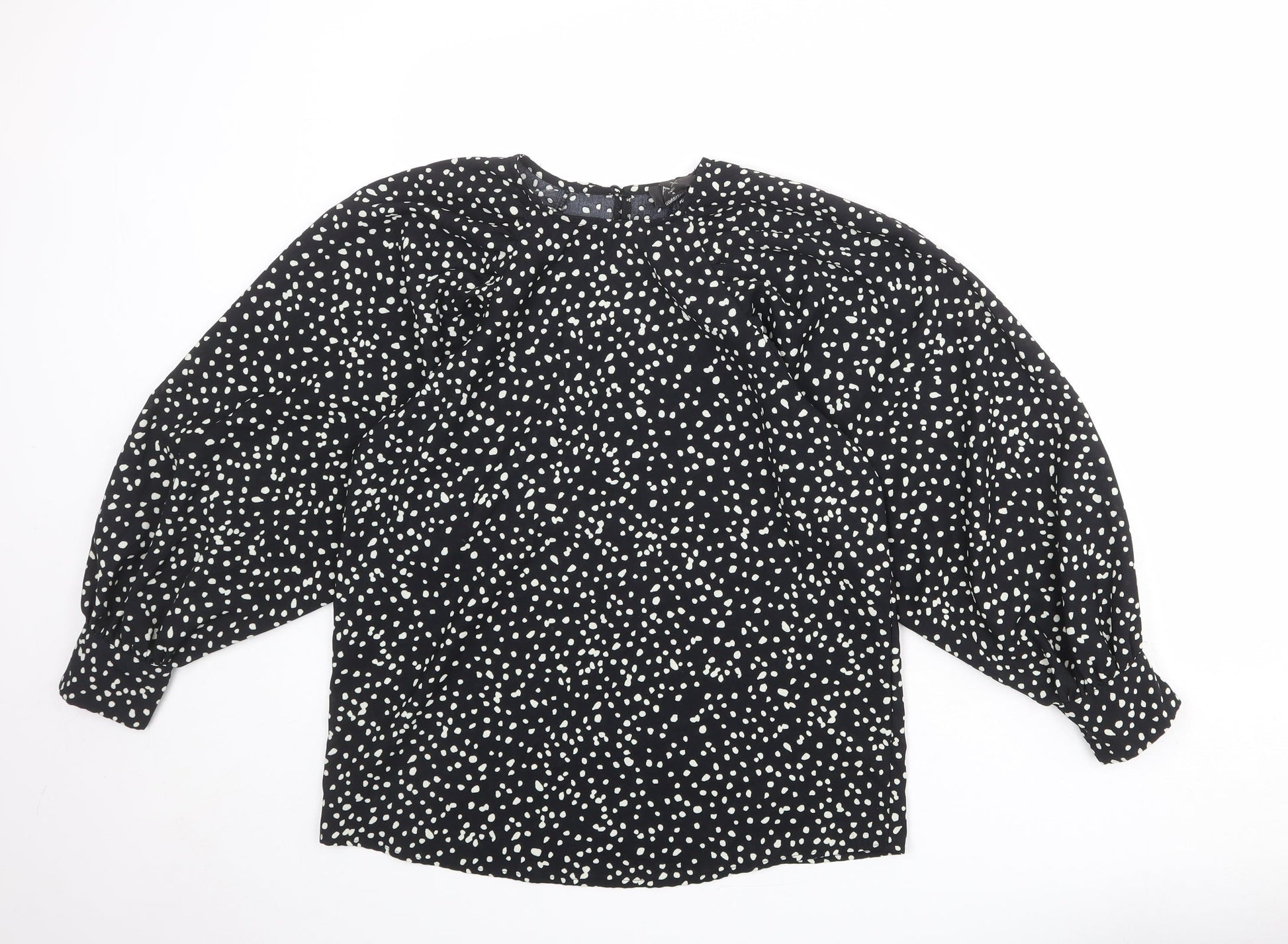 AX Paris Womens Black Animal Print Polyester Basic Blouse Size 8 Round Neck - Spotted