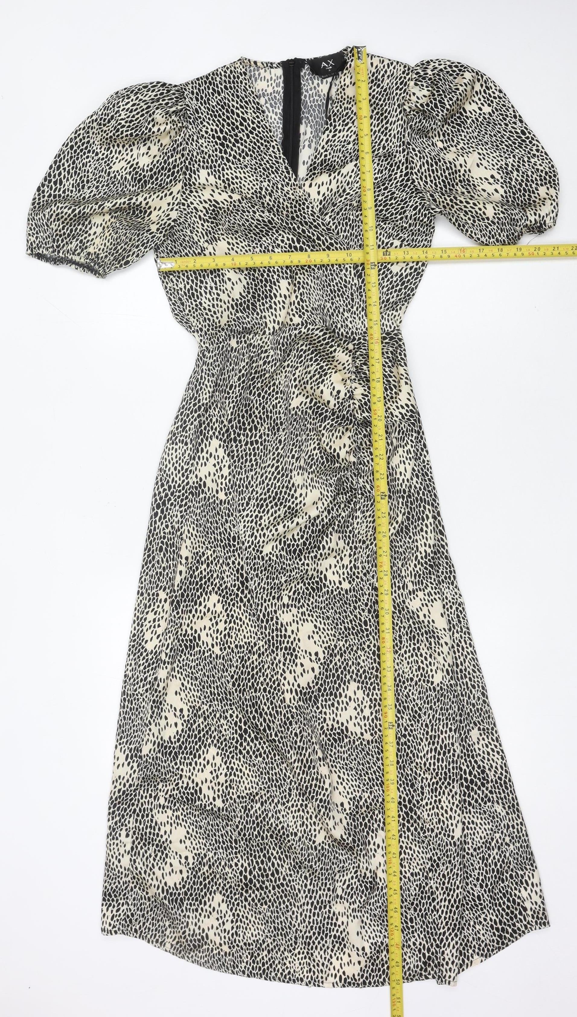 AX Paris Womens Black Beige Animal Print Midi Wrap Dress S