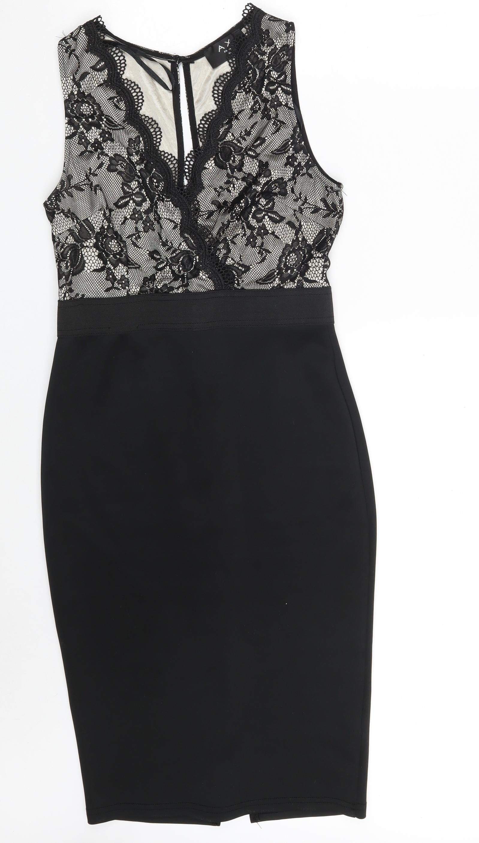 AX Paris Womens Black Floral Polyester Bodycon Size 10 V-Neck Zip