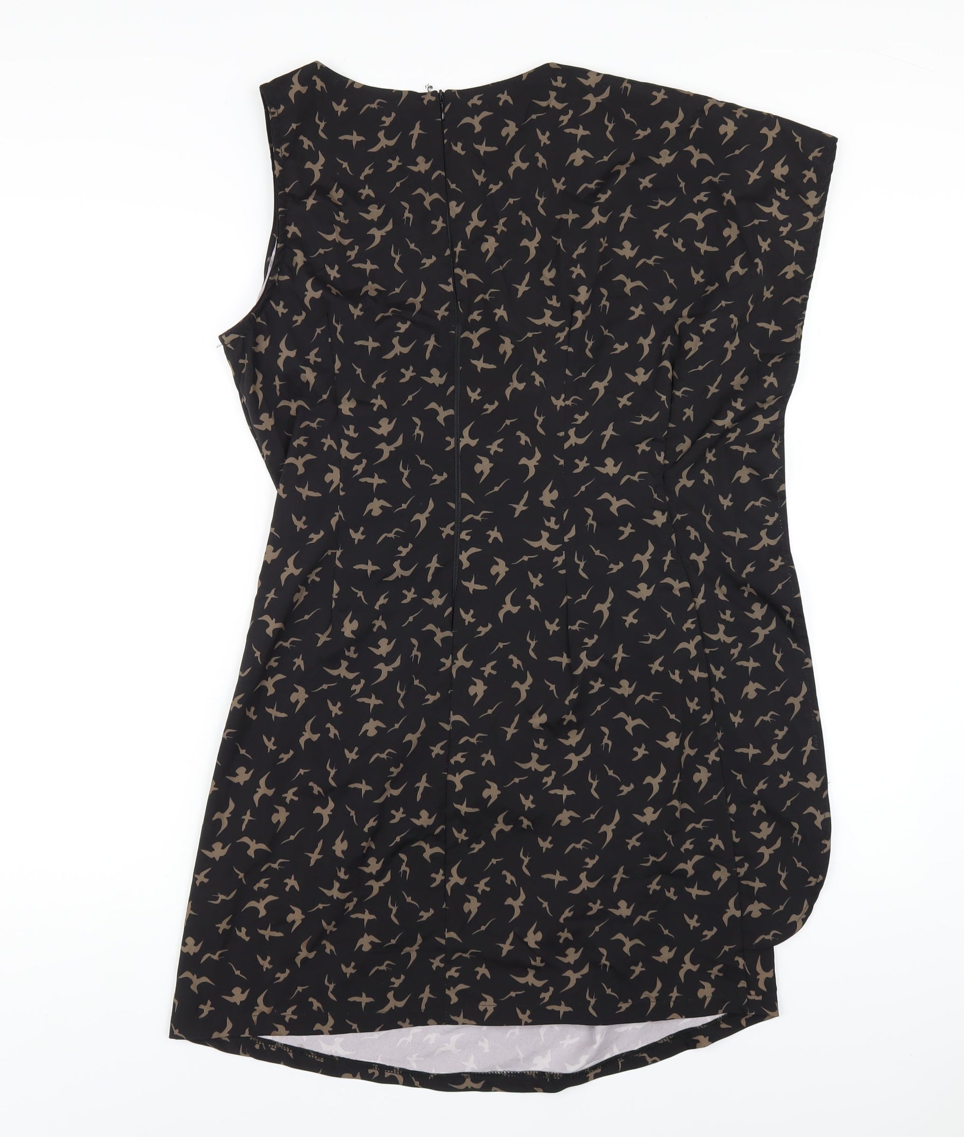 AX Paris Womens Black Geometric Nylon Pencil Dress Size 12 Round Neck Zip