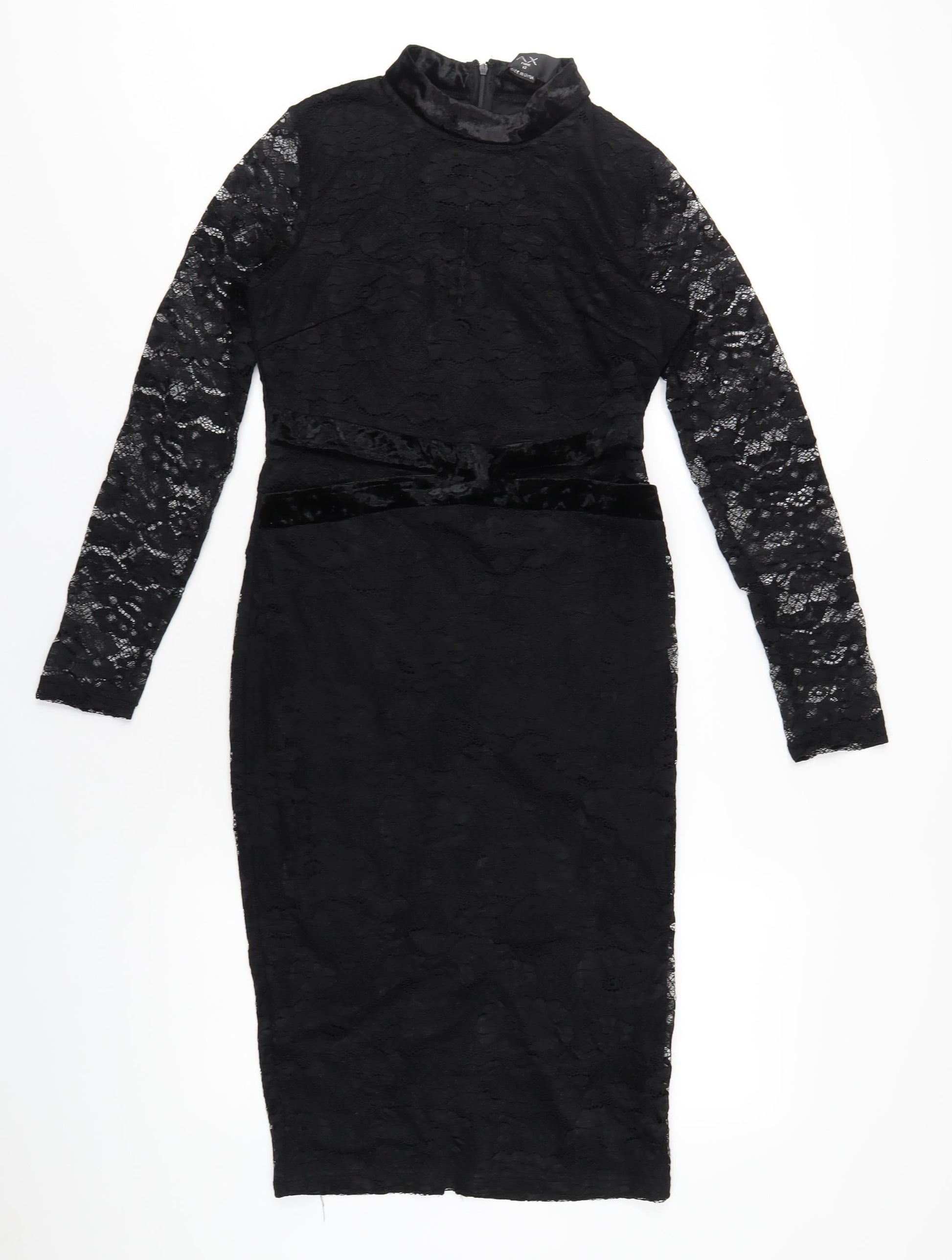 AX Paris Womens Black Polyester Bodycon Size 12 Round Neck Zip