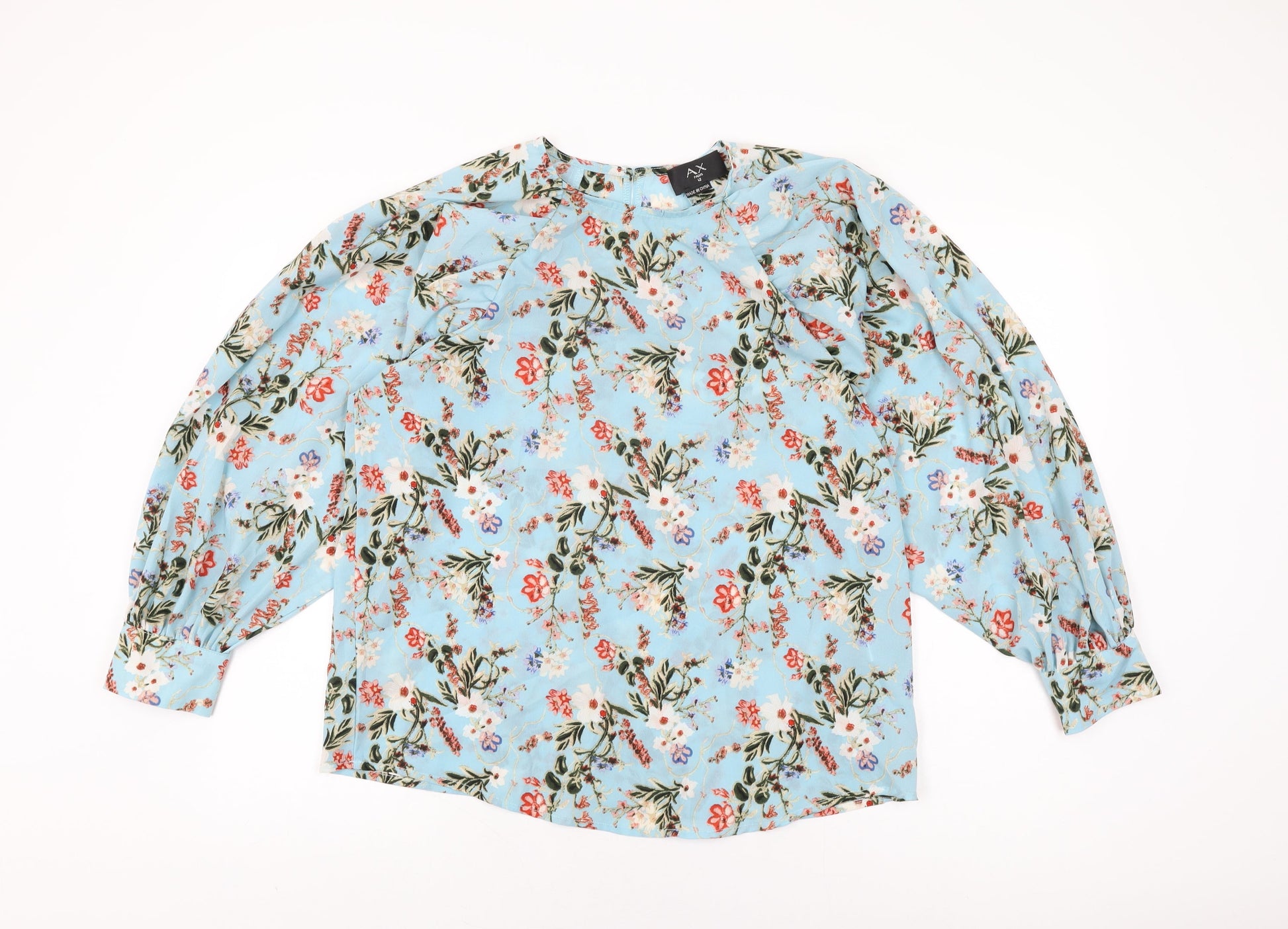 AX Paris Womens Blue Floral Polyester Basic Blouse Size 12 Round Neck