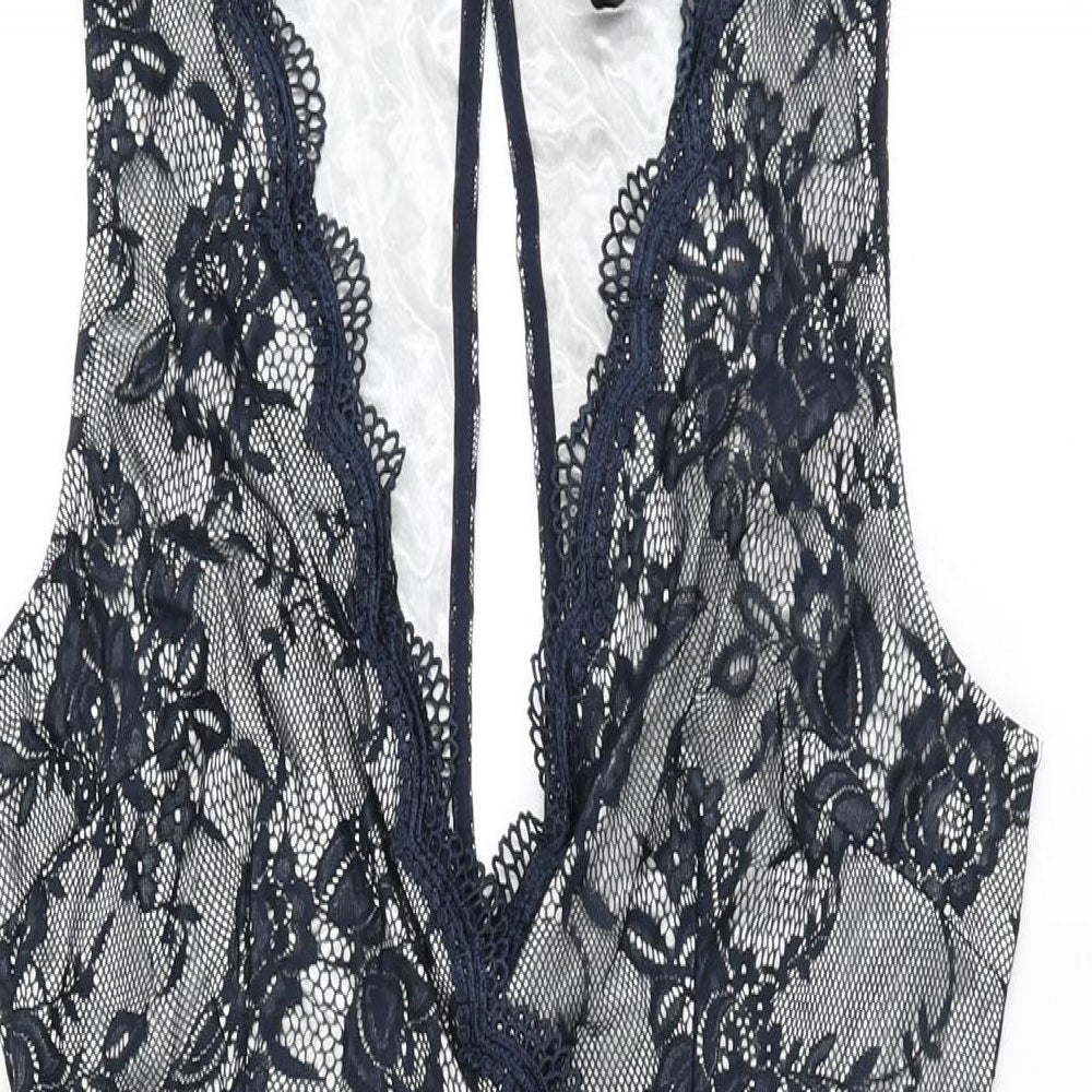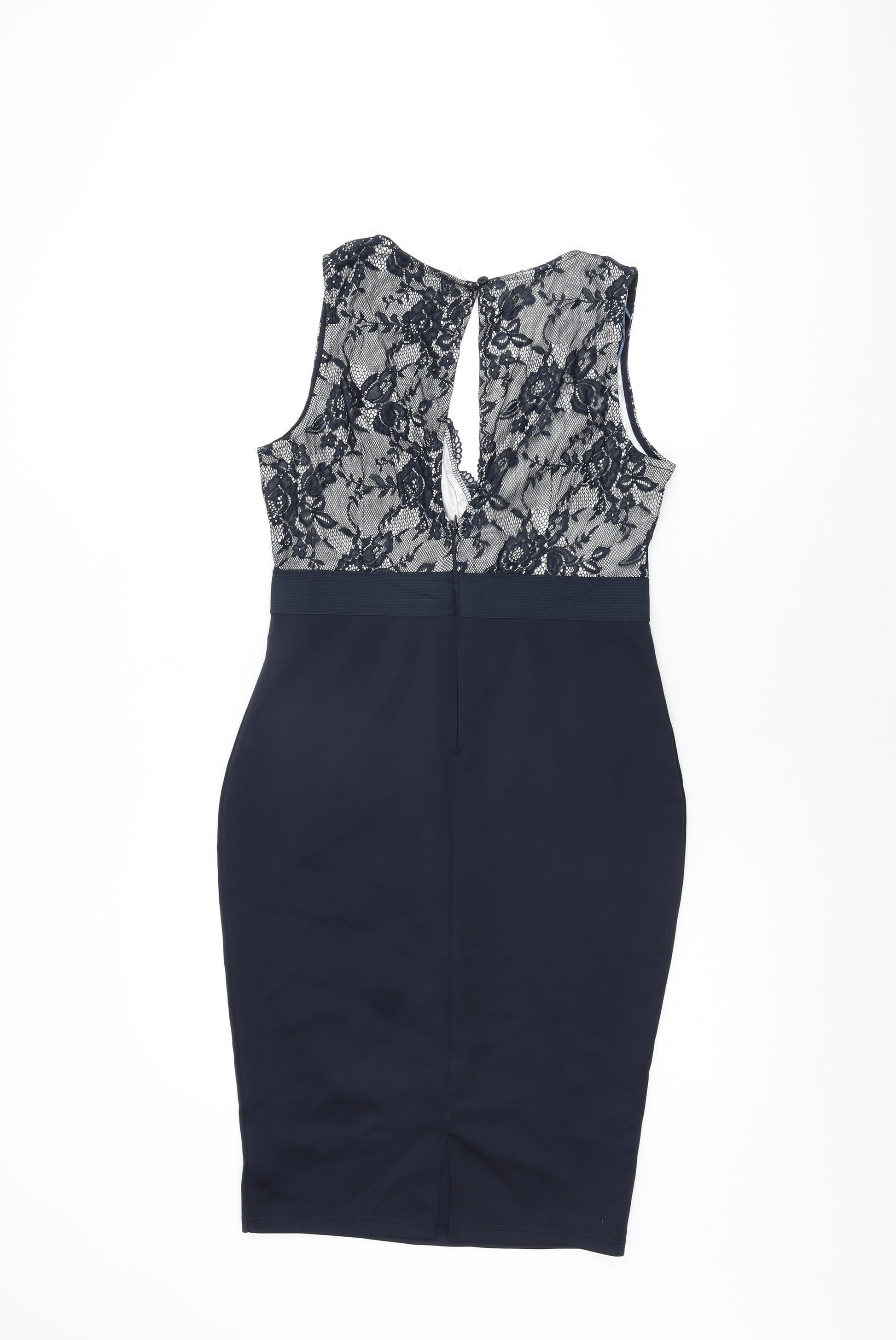 AX Paris Womens Blue Floral Polyester Bodycon Size 12 V-Neck Zip
