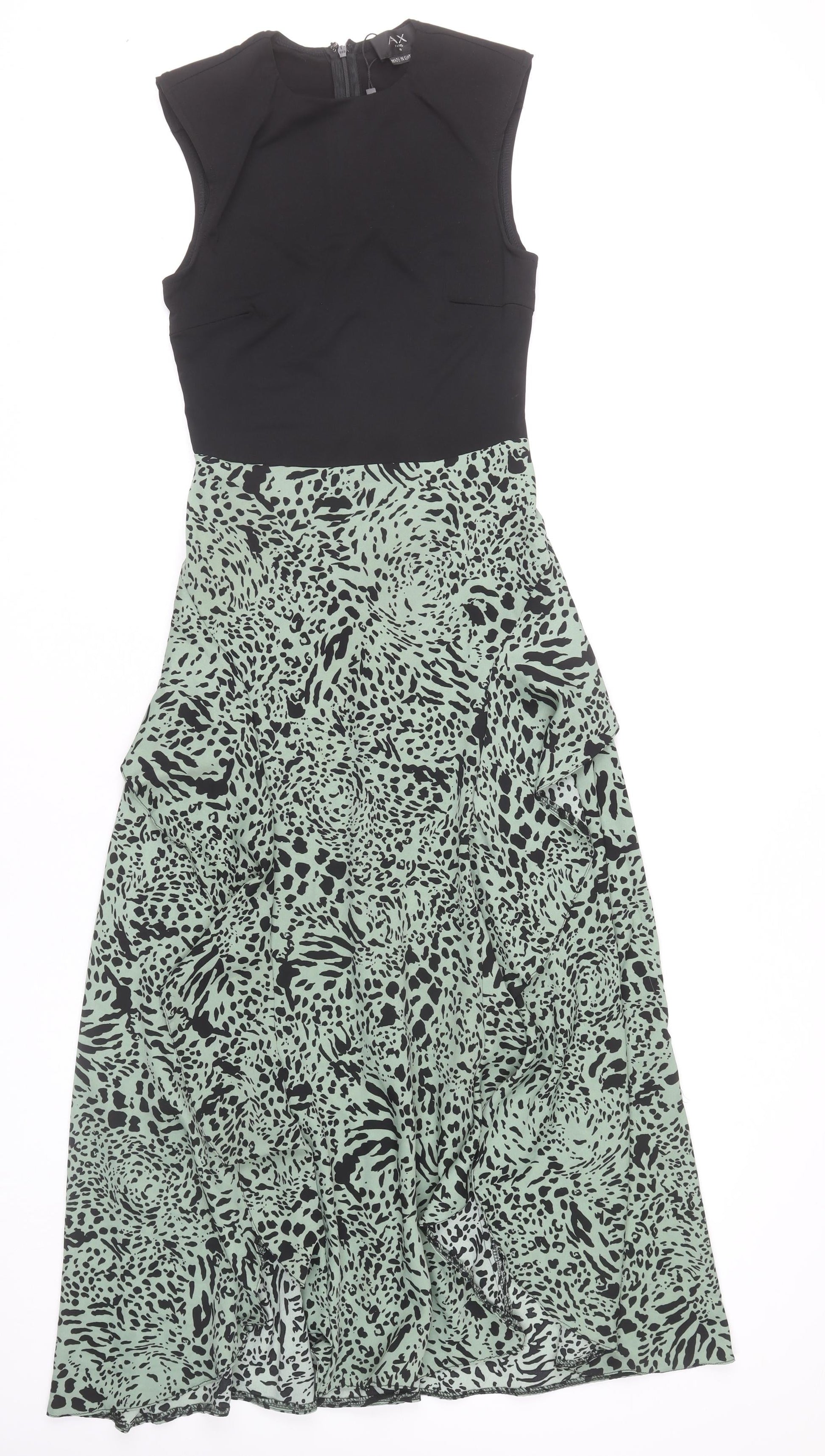 AX Paris Womens Green Black Animal Print Midi Fit & Flare Dress Size 8